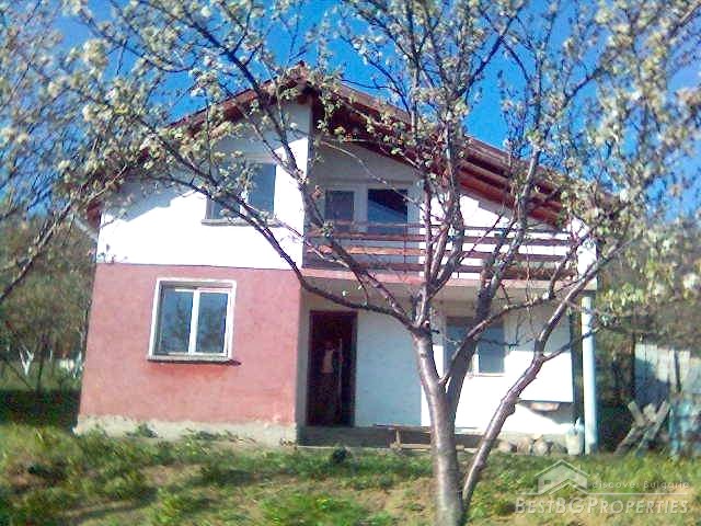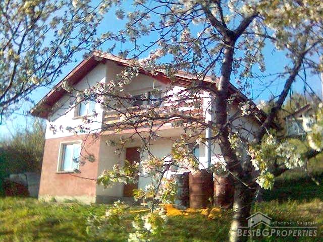 The property which is for sale consists of a nice, newly built house and a spacious yard. The house is two stories and comprises two individual entrances. The front entrance is to the first floor and there is a back stair case which is leading towards the second floor. The house also has a balcony with nice view. The house is made out of brick, finished with mineral plastering, wooden window joineries and wooden roof, covered with tiles. The house is built on a large yard - 1000 sq m. The yard is beautifully arranged and maintained. It comprises lots of fruit trees - cherries and other. The whole yard is surrounded by a fence.