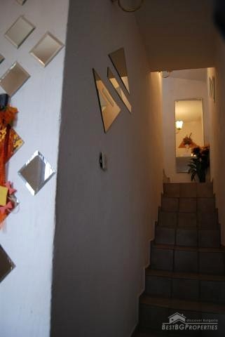 The house is three storied and comprises total living area of 147 sq m. The living area is distributed between a living room - 20 sq m and a verandah on the first floor. The second floor has total area of 65 sq m and consists of three bedrooms, bathroom, corridor and a balcony. The third floor is again 65 sq m in size and comprises three more bedrooms and two balconies. The property also includes a massive garage. The yard is 860 sq m in size - perfectly maintained, with lots of greenery. The house has all communications - water, electricity. It is on a road, easily accessible during the whole year.