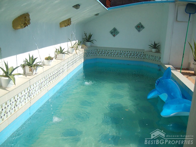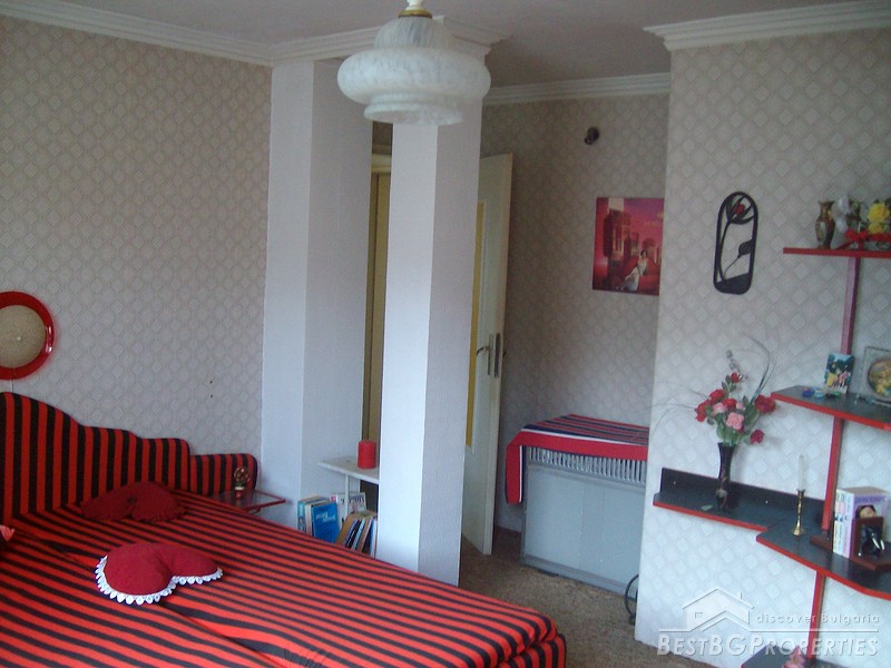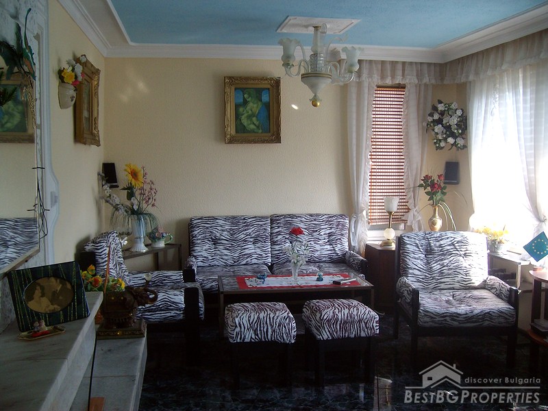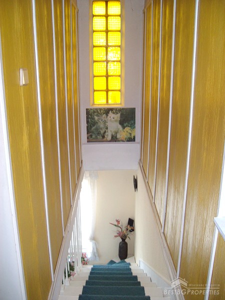 The house has total living area of 150 sq m and consists of three residential floors. First floor has a tavern and kitchen with external staircase going to the second floor. The second floor comprises of a living room, bedroom and bathroom with internal staircase leading to the third floor where you will find two bedrooms. The third floor is completely surrounded by a terrace.