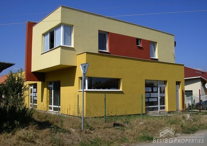 The distribution of the premises inside the house is as fallows: on the first floor there are commercial premises - stores and storage room, two bathrooms with WCs. The Second floor is residential and has living-dining room, kitchen, bedroom, office, bathroom, toilet - all perfectly furnished.