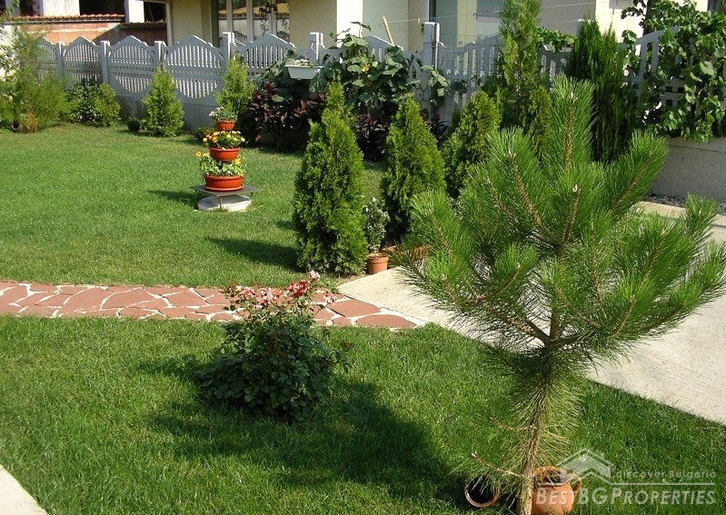 The offered house is situated on a corner plot, on a main street. It is new construction and has aluminum window joineries, heat and sound isolation, large garden with barbeque. The house comprises with two floors and a total living area of 200 sq m. The land which is included in the price is 400 sq m.