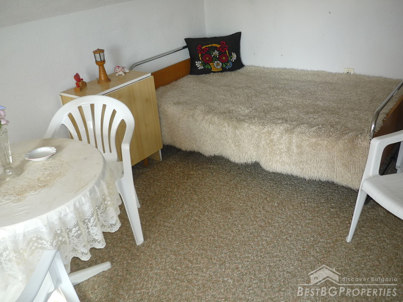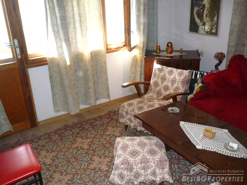 The access to the house is easy during the whole year. The yard is over 1500 sq m in size and is perfectly landscaped and cultivated. The property has its own water supply. The house is two-storied with total living area of 150 sq m. It has the fallowing distribution of the premises: On the ground floor there is a tavern with fireplace, dining area, kitchen box and a bathroom. On the first floor there is a living room, one bedroom, and balcony. Second floor has two bedrooms and a balcony.