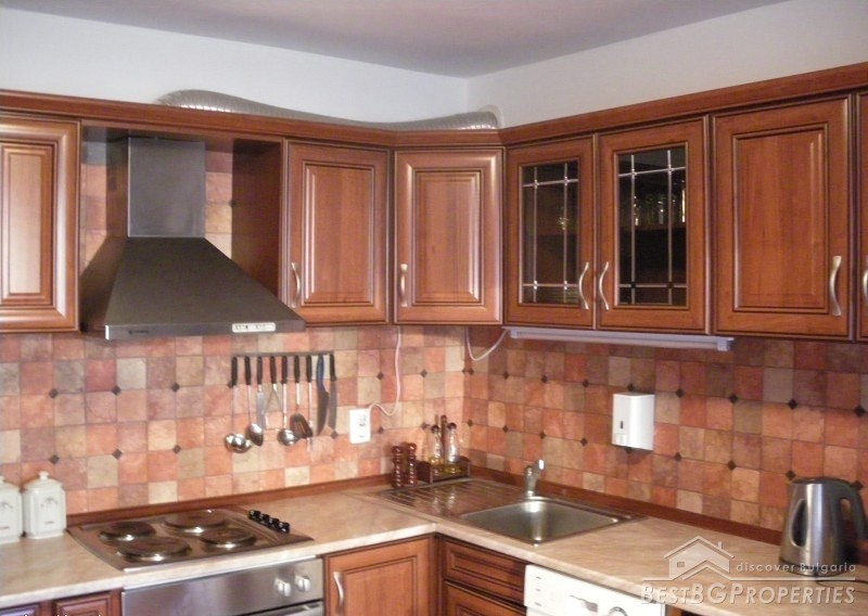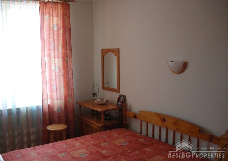 The distribution of the premises inside the house is as follows: 1st floor - kitchen, dining room with fireplace, closet and a bathroom. Second floor has a spacious living room, 2 bedrooms and a bathroom. The floors are tiled on the first floor and there is natural flooring on the second floor. The walls are painted and the bathrooms are finished with terracotta and faience. There is aluminum window joinery, insulation, central heating with wood burning boiler, sewer, cable TV and Internet.