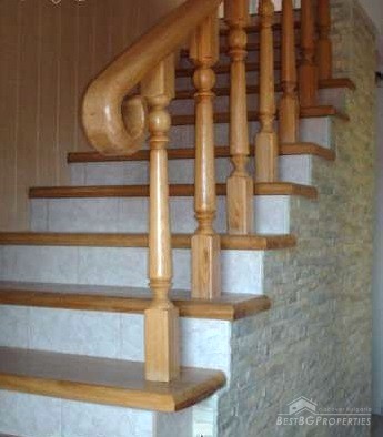 The house has total living area of 240 sq m – 80 sq m for each floor, a yard of 480 sq m and a garage – 40 sq m. The house consists of two bathrooms with WCs, living room with kitchen box, and four bedrooms. The third floor is one whole premise which can be divided if desired.