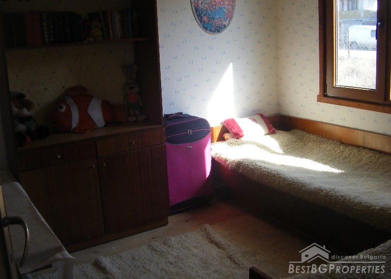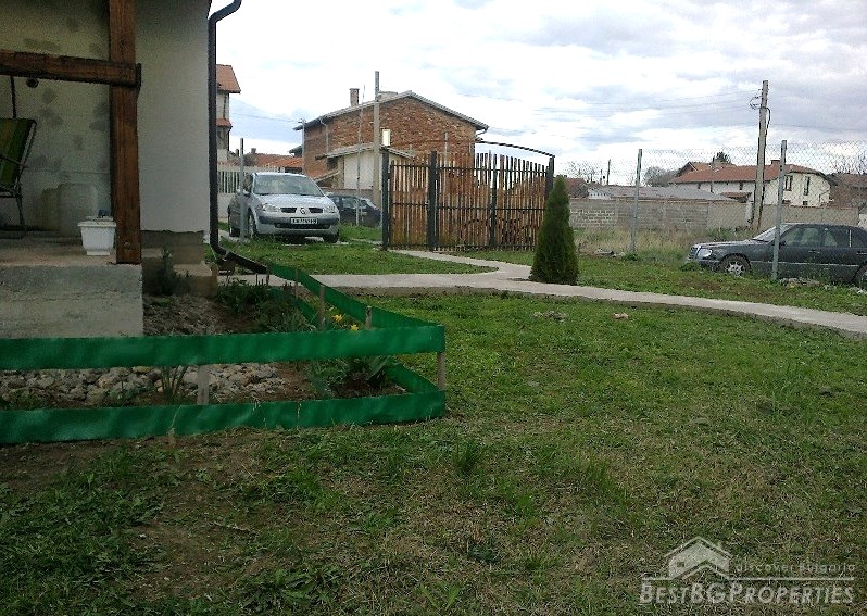The total living area is 64 sq m. The house is furnished. The size of the yard is 318 sq m and it is perfectly landscaped. The neighborhood is quiet. In close vicinity there is a kindergarten, school, swimming pool, shops and bus stops. The house is 20 minutes from the center of Sofia and 8 km from a metro station.