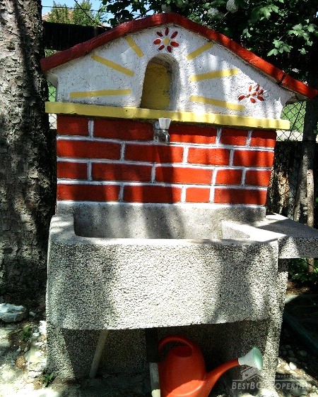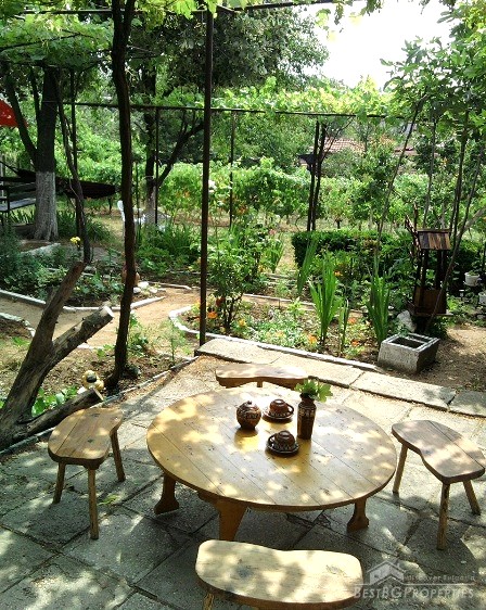 The house has total living area of 40 sq m, on one floor. The size of the yard is 802 sq m. The house has inside and outside sanitary premise and a fireplace. Outside there is a barbeque. The garden is lovely maintained and includes vines, fruit trees and flowers.
