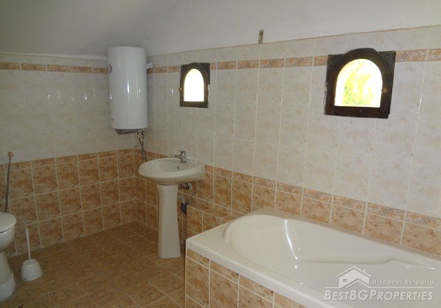 The house consists of one floor and an attic premise also suitable for living. It has an area of 76 sq m. The first floor comprises of a living room, kitchen, bedroom, large bathroom with WC, room suitable for a second bedroom and a covered porch. An internal staircase leads to the second floor where there is a room with sloped ceiling, large bathroom with toilet and bathtub and a large terrace. The house has a basement with an area of 15 square meters The garden is 850 square meters.