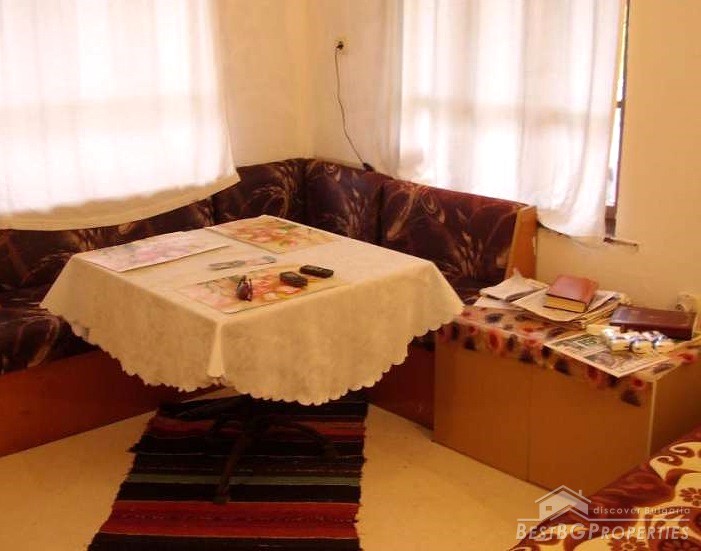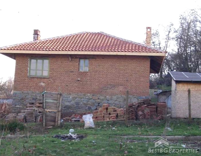 The house is situated in the village center near stores, bus stop, and a park. It has total living area of 120 sq m, distributed between two floors. The house has a basement. The roof is fully repaired. Replaced are also the plumbing and electrical installation. The heating is on solid fuel (stove on wood and coal which is also suitable for cooking). The basement is used for a wood stock.