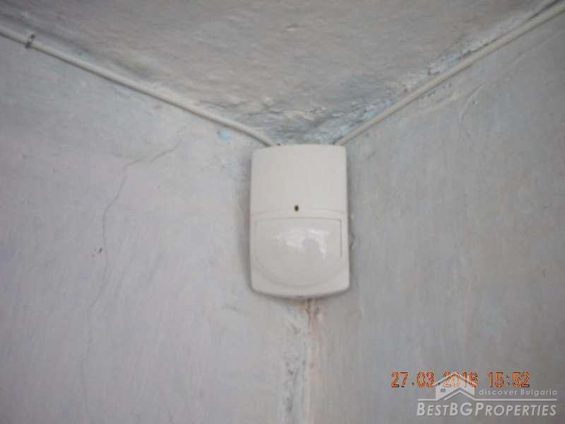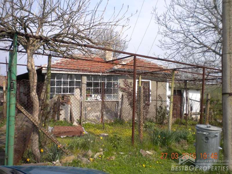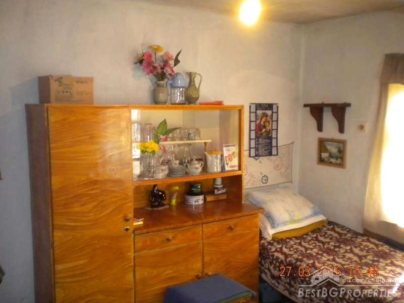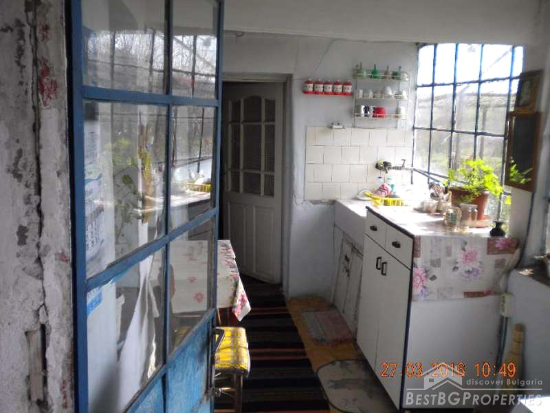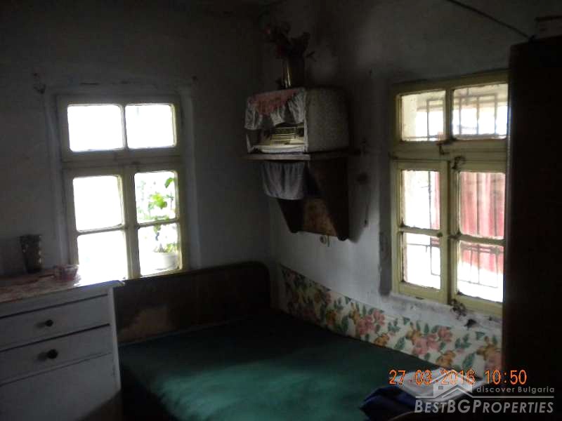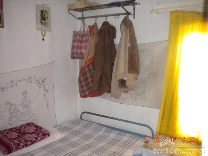 The house has total living area of 70 sq m. It consists of 3 rooms of which one is transitional and a corridor. There are two more rooms in the adjacent building. The house has electricity, water, phone, cable TV, electric pump to irrigate the crops with water from a nearby creek. There is installed security system with a siren and can optionally be connected to a security company. In the yard there is a concrete slab laid down for building a garage. The house needs cosmetic repairs.