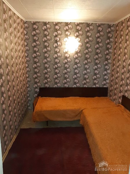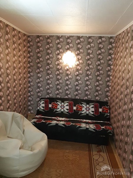 The house has two floors. The first floor is with an area of 35 sq m - stone built. It consists of two rooms - one living room and the other one is a kitchen. The second floor is 45 sq m – brick built. It comprises of three rooms – one living room and two bedrooms. There is also an internal toilet with a sink on the second floor. The house is completely renovated.