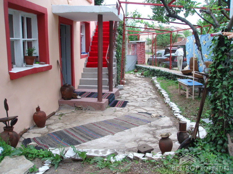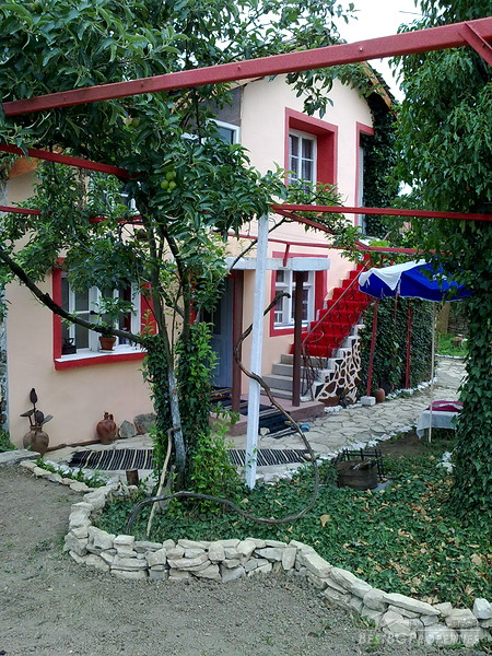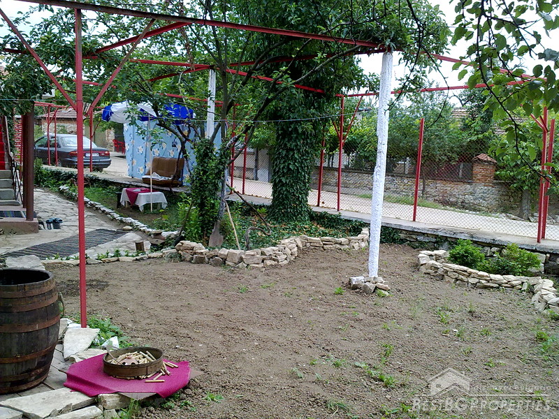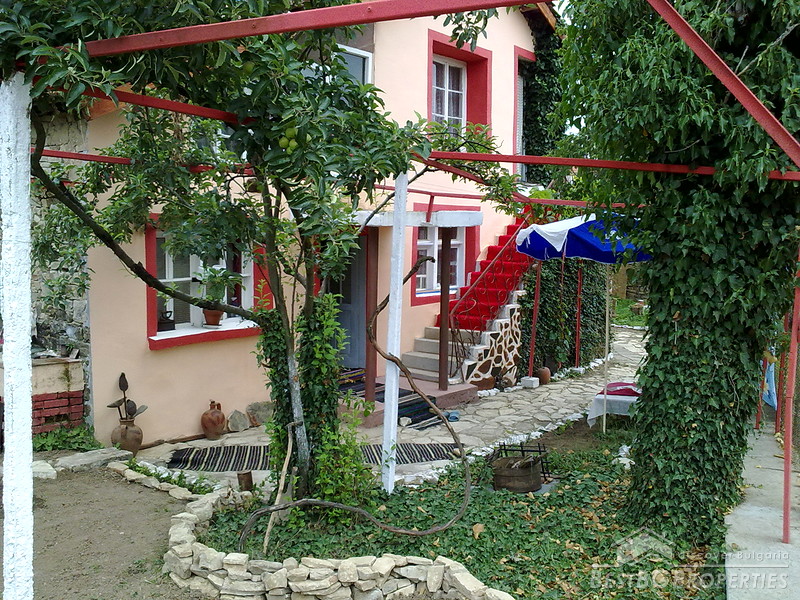 The house is fully furnished in an old traditional style. It is build up of bricks and stone and is in very good condition. The fence of the yard is made of stones and net. In the garden there are trees, trellis vine, and flowers.
