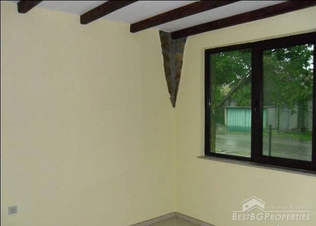 The house which is for sale was finished last year and has act 16 permition for usage. It comprises one residential floor and a mansard premise. The house has built area of 70 sq m and a yard of 400 sq m in size. It is fully finished to "on key" stage, only without the furnishing. It comprises fully equipped bathroom with WC and a fireplace. The house consists of a kitchen, living room, one bedroom, children's room, luxury bathroom with WC. Besides that there is a mansard premise, also 70 sq m in size which is not yet completed. The floorings in the house are with terracotta and faience. The walls and ceilings are painted with high quality latex paint. All kinds of switches and sockets are installed, water and electricity provided. The yard is perfectly landscaped and surrounded from all sides by a fence.