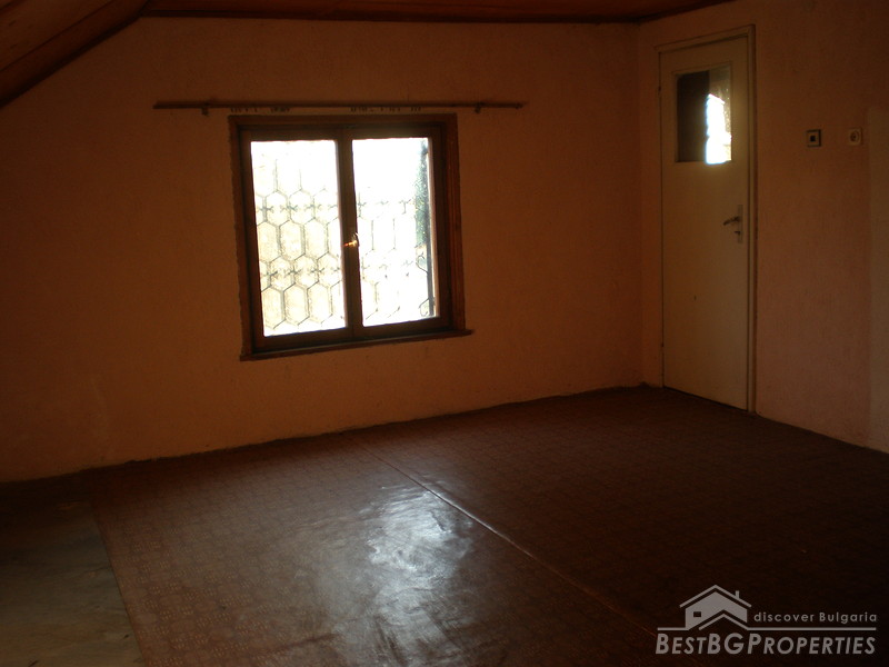 This is a spacious 3 bedroom house for sale, located in a picturesque village near the town of Stara Zagora. The house consists of indoor wet room, one bedroom, kitchen and living area downstairs. The external stairs leads to the second floor where there are 2 more bedrooms. The plot area which is included in the price is 800 sq m plus additional plot of 700 sq m, in total - 1500 sq m.