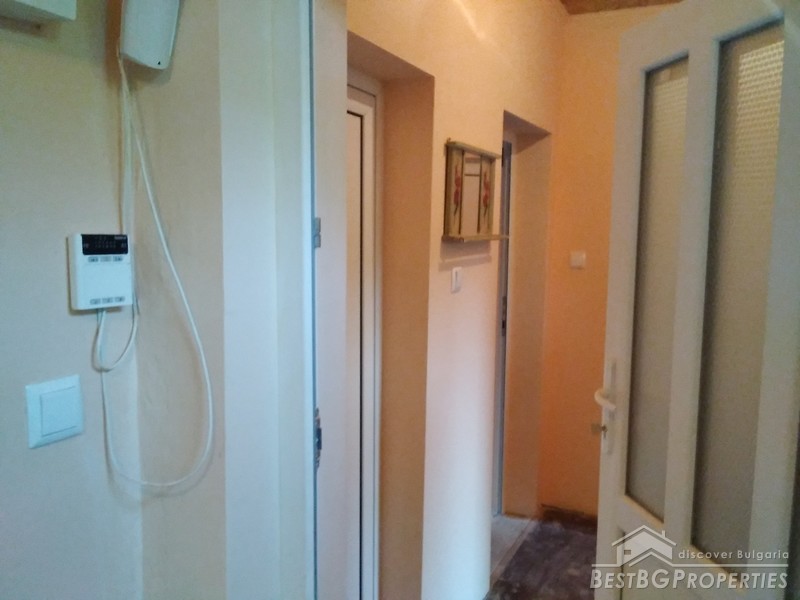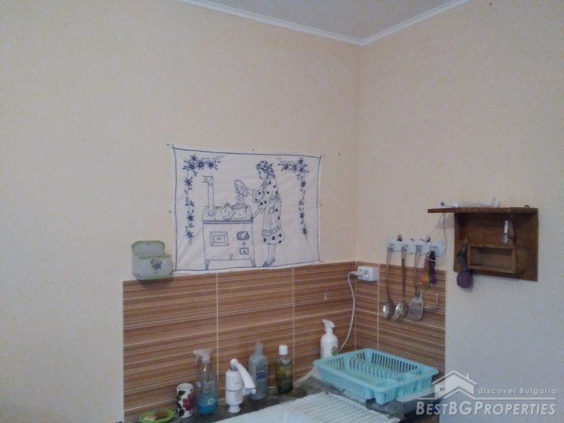 The house is single storied with total living area of 64 sq m. It has one bedroom and a living room , inside WC and a basement. The roof is brand new as well as the windows . The house is ready to be lived in . There are two entrances and two lounges. The house is connected to water and electricity and in the yard there is a water drill. The yard is 1100 sq m in size. It is flat and perfect for cultivation.