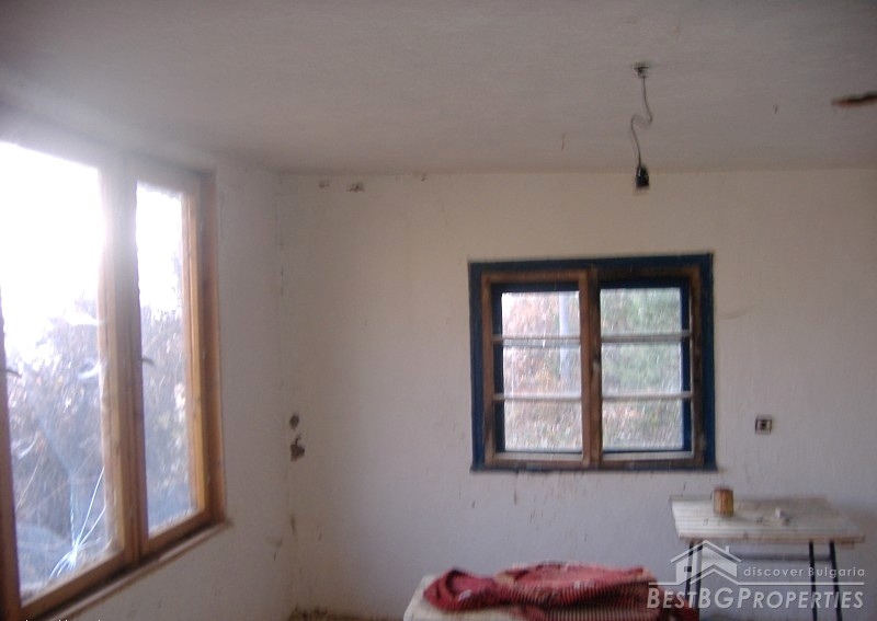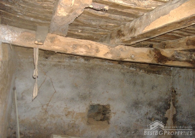 The house consists of one residential floor with two rooms and a kitchen above a spacious basement. The house was restored, but is not habitable. It needs repair although the floor and roof are solid and the beams are restored. There is an electricity line, but the electricity is stopped. Unfortunately there is no water, but it could be connected. The nearest water source is about 400 meters away. The property is built on a large rock. There is a garden of 1, 2 acres - part of it is a forest. The yard has a slope of 45 degrees (steep) and the house is located above the hillside with stunning mountain views. The whole yard is overgrown with young pine trees.