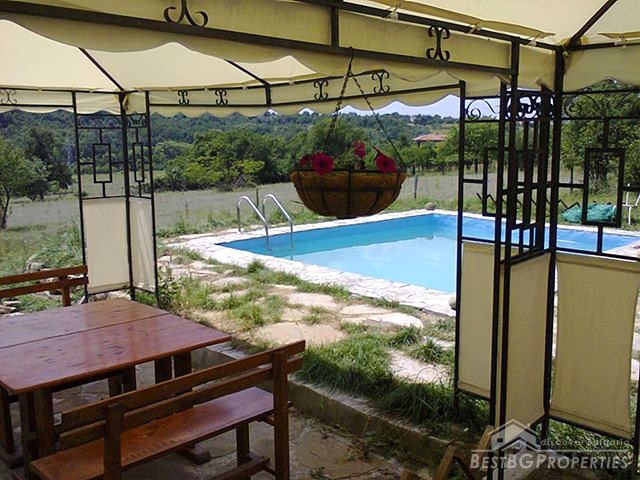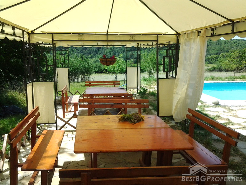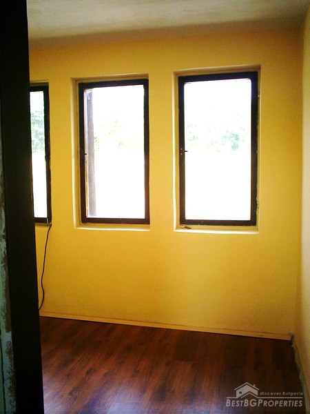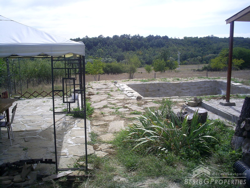 The house is located in a picturesque village part of Antonovo municipality, Targovishte district. It is situated on an asphalt road at a distance of 2.5 km from the dam of Yastrebino and 1 km from the main road Sofia - Varna. It was built in 1987. The construction is solid with seismic rings. Plumbing installation is completely renewed and the wastewater is dumped into the village sewer. The heating in winter is due to the central heating powered by solid fuel boiler. The hot water is provided by two boilers.