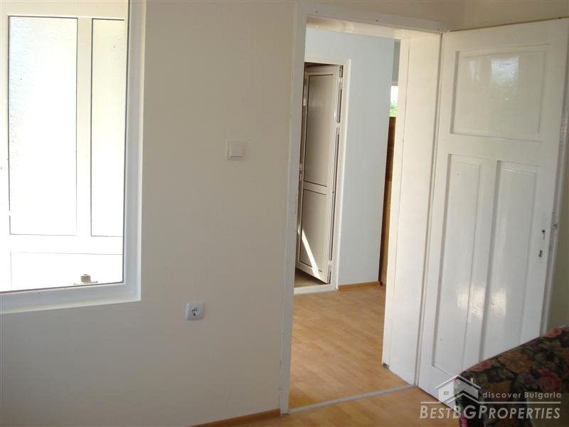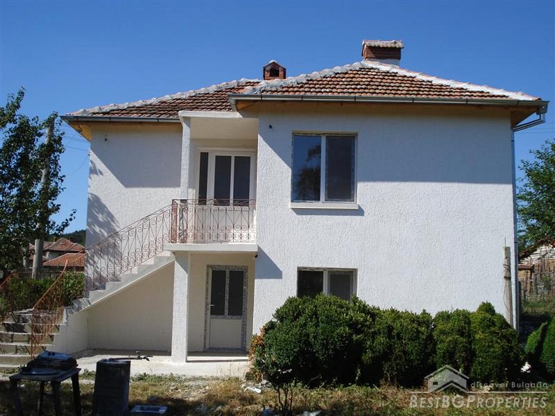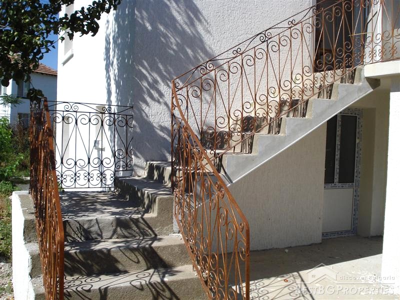 It is a spacious fully-renovated in perfect condition two storey house. The total living area is 144 sq m and the yard is with size of 1290 sq m. The distribution of the premises is as fallows: ground floor - kitchen with a dining room, a lounge, a bedroom, a bathroom with a toilet and a corridor. External staircase takes you to the first floor where there are two big bedrooms, a lounge, a bathroom with a toilet, and a corridor.