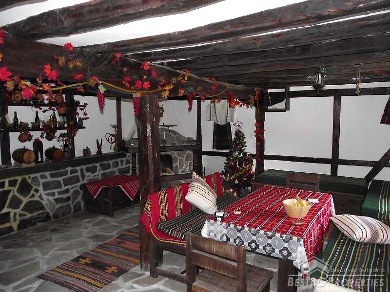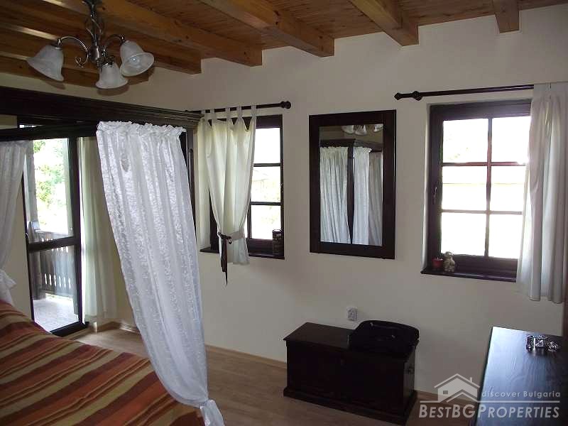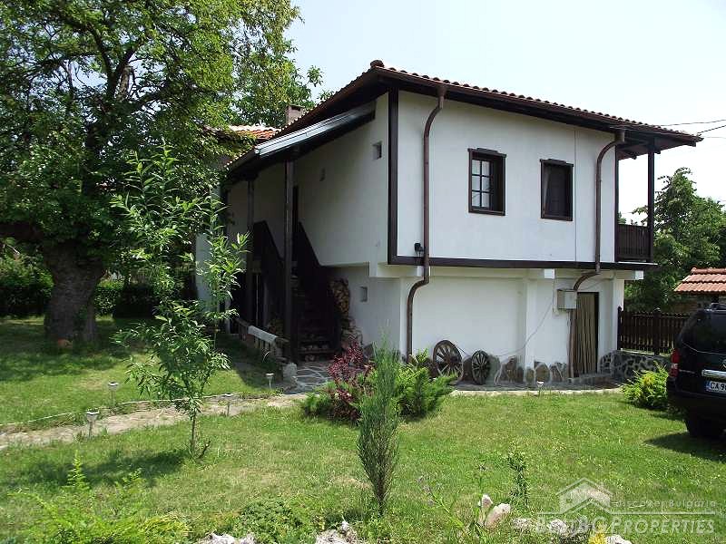 We are offering to your attention a fully renovated and refurbished house with preserved typical Balkan architecture, furnished with new furniture. It has 2 floors with south exhibition. The house is sold with all the furniture. It has local heating with automatic boiler. The garden is 600 sq m with unique landscaping, artificial river, 2 water mirrors and a bridge. There is a barbeque with fireplace, kitchen to the barbecue.