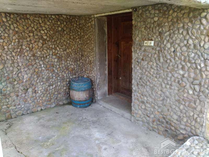 The house is solid (brick and concrete construction) with total living area of 60 square meters. The property includes a yard with fruit trees. The plot is 2000 square meters in size. There is electricity and possibility for water.