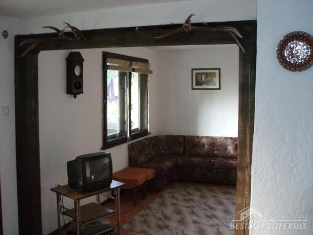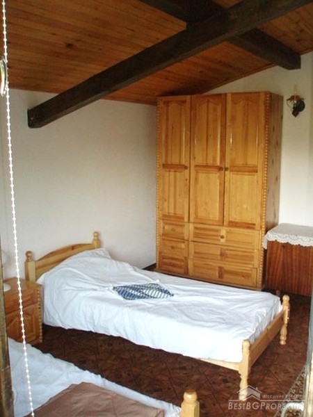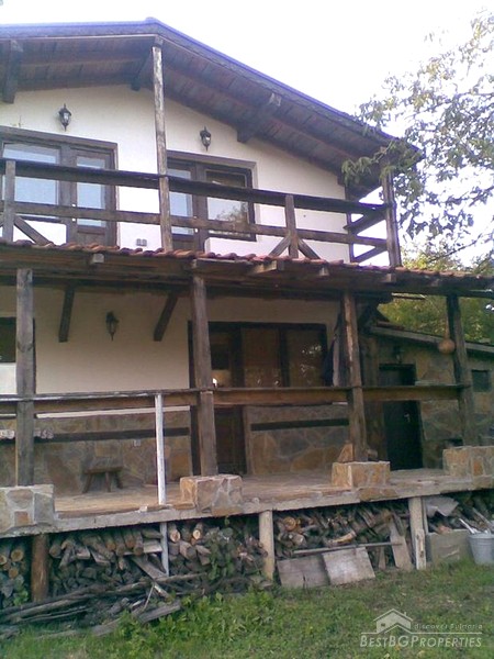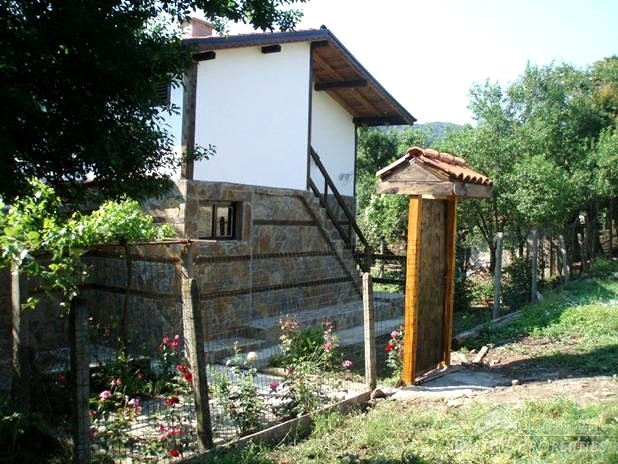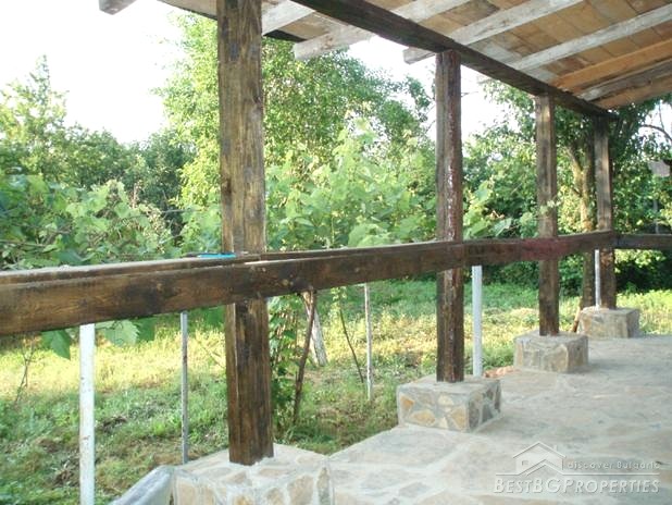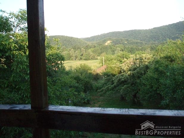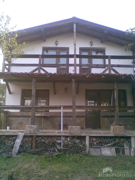 The house is built in the revival Bulgarian style - decorated with stone and wood from the outside. It comprises two floors with total living area of 100 sq m. The first floor consists of one room with kitchen box, and a bathroom with WC, also a large verandah. The second floor comprises two bedrooms, balcony and again a bathroom with WC. The property has amazing view over the surrounding green hills. The plot area included in the price has total size of around 930 sq m. It is beautifully managed with lots of greenery and fruit trees.