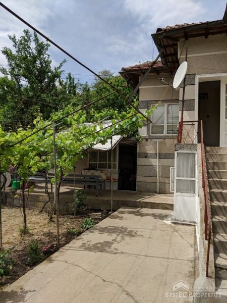 In the yard, there is also a well with excellent water and an outside toilet, a fruit garden and a farm building. In front of the house, there is a large vine, which makes a nice summer shade.
