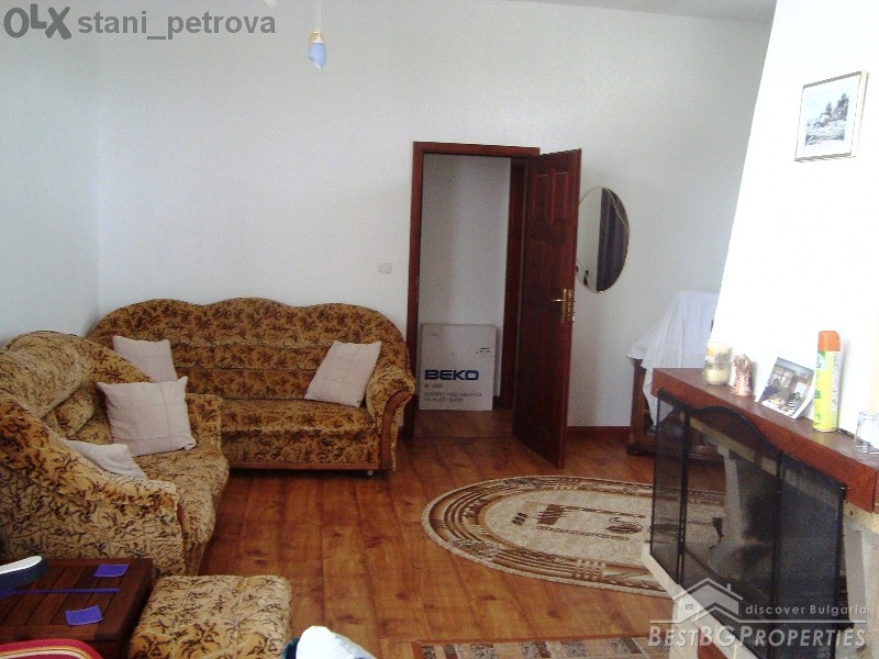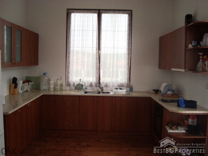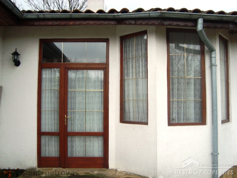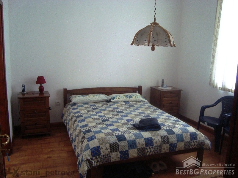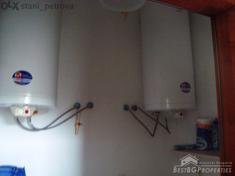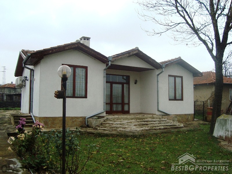 As mentioned above offered for sale are two properties one next to each other. The first one has a yard of 875 sq m and a newly built house with area 98 square meters. The property has a fence, parking lots and vegetable garden behind the house. The house is on one floor, new construction, 2 bedrooms, 2 bathrooms, pantry, living room with fireplace and kitchen. Everything is furnished. The house is sold with all furniture and all appliances. Each bathroom has a bath, and there are 2 boilers.