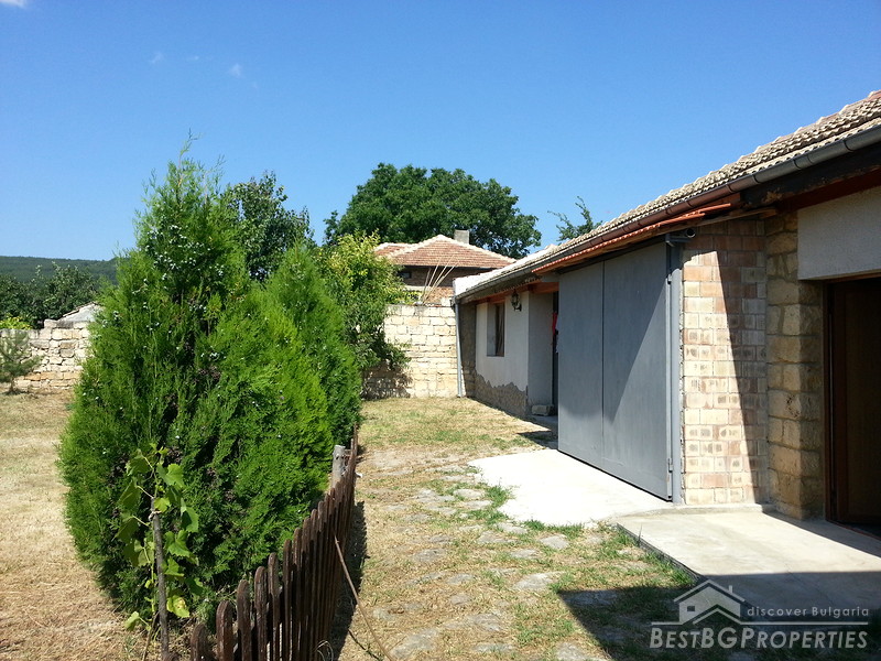 Adjacent to the house there is another large room with a separate entrance and a large fireplace. Next to it there is the garage. It has opens to both – the street and the inner yard. Next to it there is an open veranda and another separate room.
