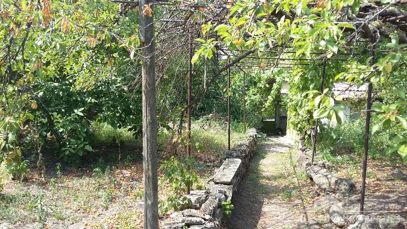 The whole parcel is 1200 sq m and the size of the house is 120 sq m. In the yard, besides the main building there is also a shed connected to electricity, an agricultural building (barn) made of brick and stone, well, many fruit trees - 2 walnuts, 1 white and 2 red cherries, apple, pear, fig, horsetail, hazelnut, vines, etc.