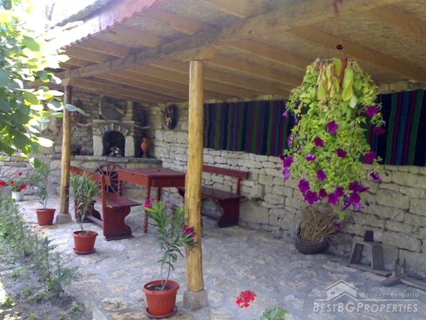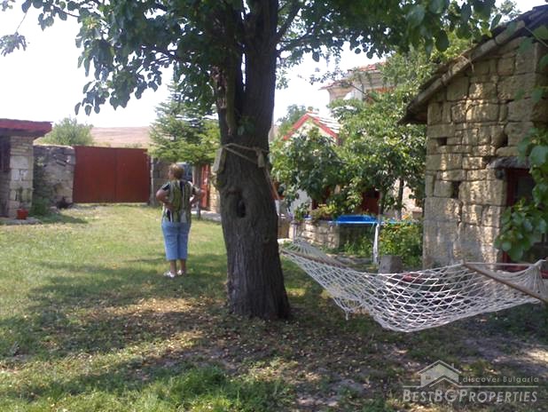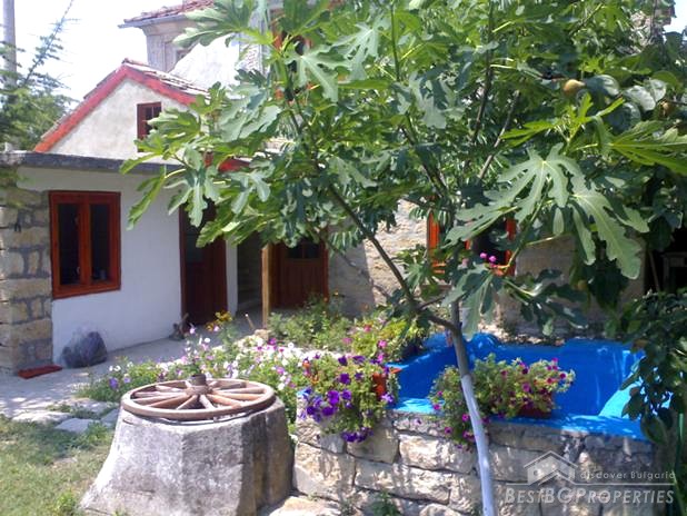 Our next suggestion is this wonderful house for sale located in a nice and calm village near the biggest Bulgarian sea city - Varna. The house has two storeys, and total living area of 80 sq m. There are 3 bedrooms on the second floor, on the first floor there is a storage room which can be easily transformed in to another bedroom. There is no inner bathroom and WC, they are situated outside. There is electricity, telephone and water provided in the property. The property is fully renovated and ready to move in. From the outside the house is decorated with stone tiles and the walls are covered with white mineral plastering. The window frames are wooden. The ceilings are also wooden. The roof is covered with red tiles.