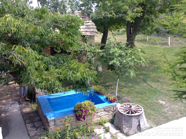 The yard is very spacious, it is 2200 sq m in size. It is beautifully managed and landscaped. There are many fruit trees growing in the garden, different sorts of plants and vegetables. There is also a well, barbeque an outside open bath and a few additional outbuildings in the yard. The barbeque area is covered from the rain, beautifully decorated and furnished with a big wooden table and benches. The whole property is surrounded by a massive brick wall. The access is through a big metal gate.