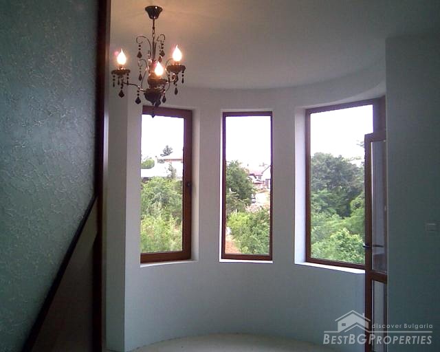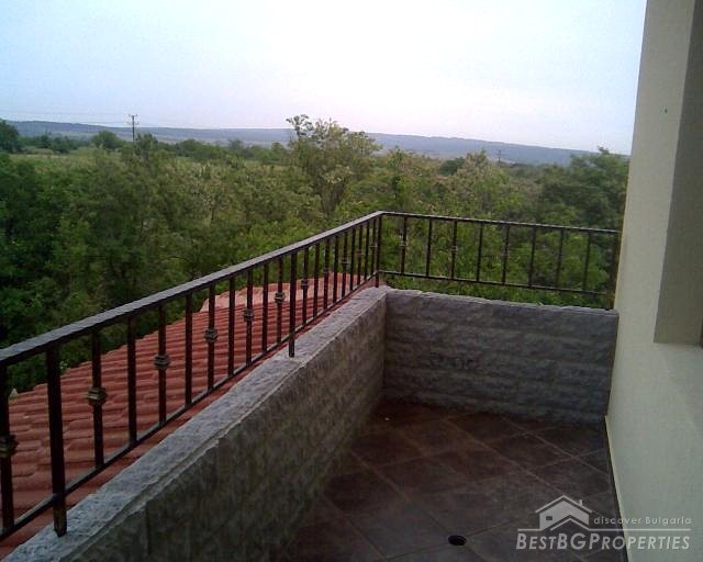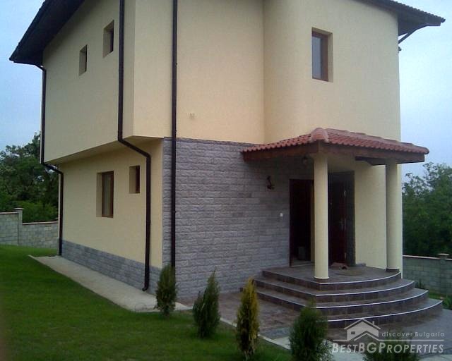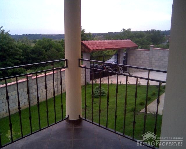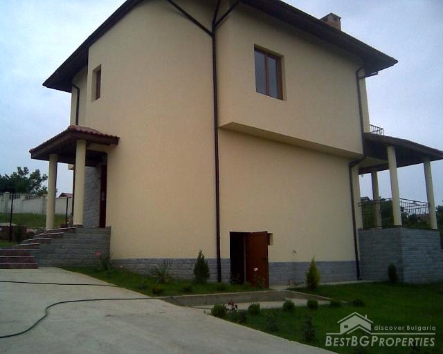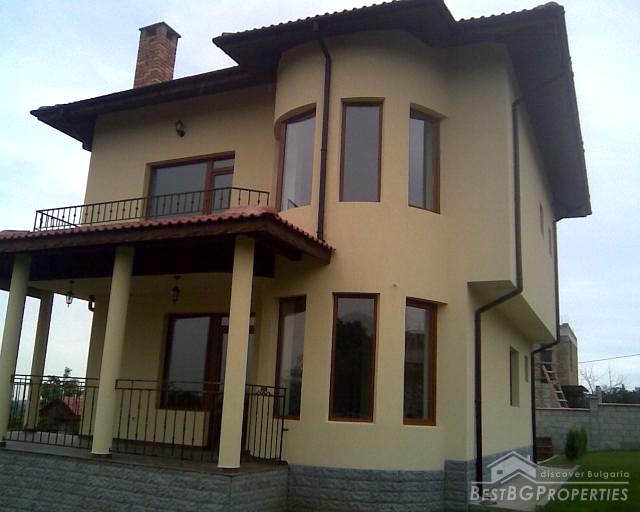 This next splendid property for sale is located in a nice picturesque village near the town of Varna and in close proximity to the sea shore. It comprises a newly built house and a yard. The house has total living area of 165 sq m spread on two floors. The first floor includes bathroom with WC, living room, kitchen with dining area and a fire place, balcony and basement which is 16 sq m in size. The second floor comprises 3 bedrooms, bathroom and WC which is 15 sq m in size and a balcony. The house is finished with best quality materials by the highest standards. The window frames are PVC, the doors are MDF. The floors are finished with laminate and granitogres. There is outer and inner isolation of the walls. They are also mineral plastered from outside and inside and painted with latex paint from the inside. The fire place is made from natural stone. The outer door and the railings are from high quality steal. The plot is 500 sq m in size. There is a parking lot with room for 5 vehicles. The whole property is surrounded by a solid, concrete fence. From the balconies of the property opens magnificent view towards a forest.