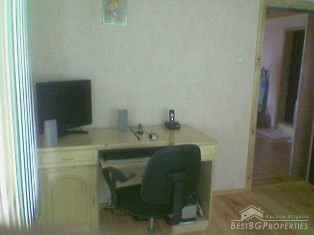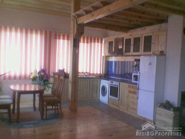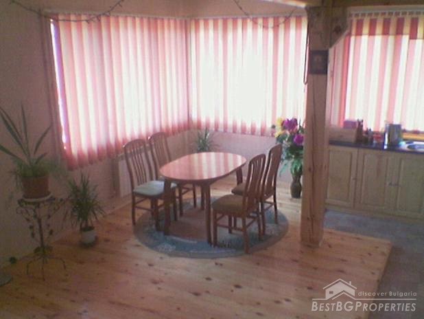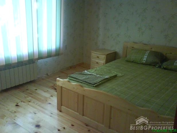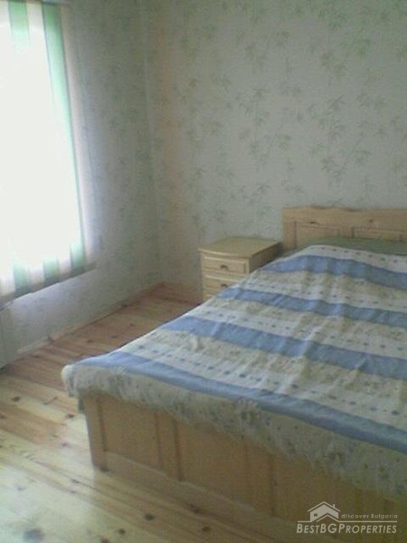Have a look at this outstanding suggestion! This is newly built, large, one storey house for sale situated near the city of Varna. It has total living area of 160 sq m. The house comprises 3 bedrooms, living room with kitchen box, closet, second inside level with one more room with outstanding view towards the sea and also one spacious porch. The house is one year old and has act 16. It is finished with inner and outer isolation, wooden window frames, wooden ceilings and roof, the floorings are also wooden. The walls are covered with wallpapers. The house is fully furnished and equipped. The furnish is wooden and very high quality. The living area comprises one wooden table with 4 wooden chairs, there is also big 50 - inch plasma TV. The kitchen is 7 meters wide, equipped with washing machine, cooking range, microwave, fridge, absorber and wooden cupboards. Each bedroom comprises wooden bed, night stands and bureau, each with computer. The bathroom is finished with terracotta and faience, it is fully equipped with sink, bath tub and sanitary equipment.