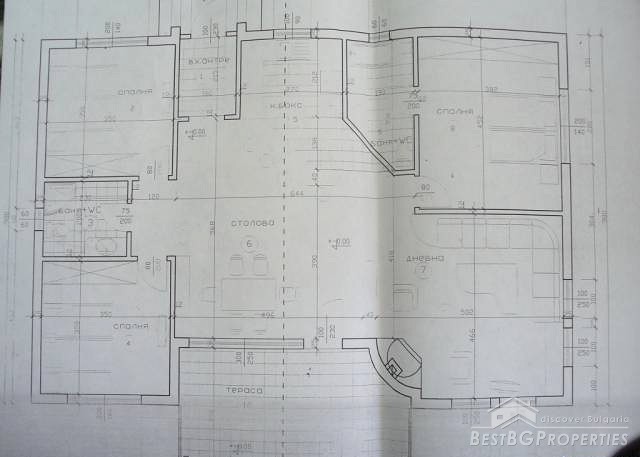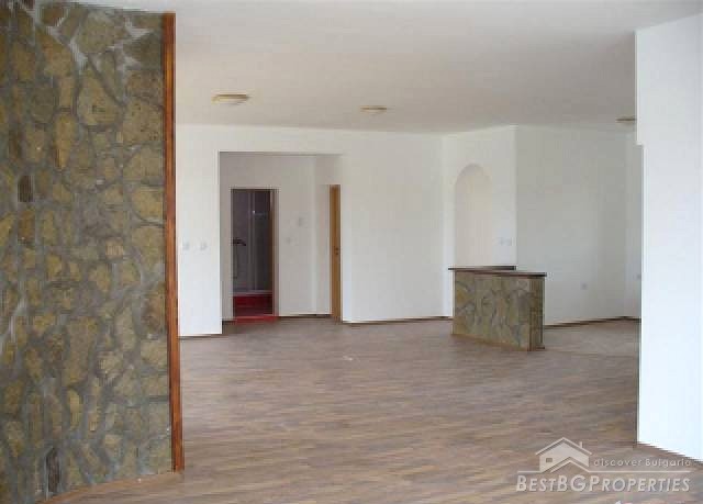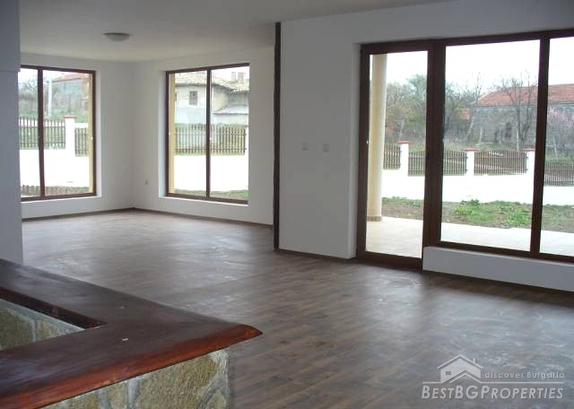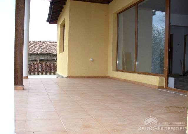 The house which is for sale is newly built and comprises total living area of 155 sq m. The living area is distributed among one living floor. It consists of a living room with kitchen box - 60 sq m large, three bedrooms, two bathrooms, closed terrace - 20 sq m. The house is finished to meet the highest requirements of construction. During the construction have been used best quality materials. The living room and the three bedrooms are finished with laminate floorings. The kitchen, lounge, and the bathrooms are with terracotta. The house is built on a plot 680 sq m large. The plot comprises three parking lots, and a barbeque area.
