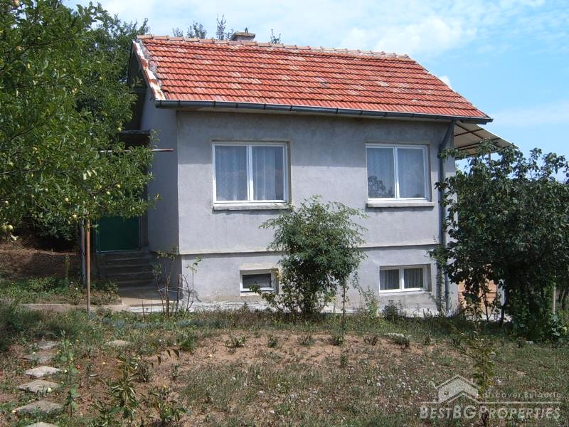 The house which is for sale is two stories. The first floor is partly underground. This floor consists of a kitchen, basement and a corridor. An outer stair case is leading towards the second floor where you will find one large room, one smaller room, corridor and a balcony with nice views. The whole living area of the house is 80 sq m. The house is brick built and is for sale fully finished, ready to move in. It is built on a very spacious plot of land - 15000 sq m large. The yard comprises many fruit trees, wines and other greenery. It is surrounded on all sides by a fence. The property is exposed to two asphalted roads. The area is very calm and quiet with perfect panorama.