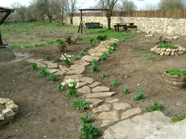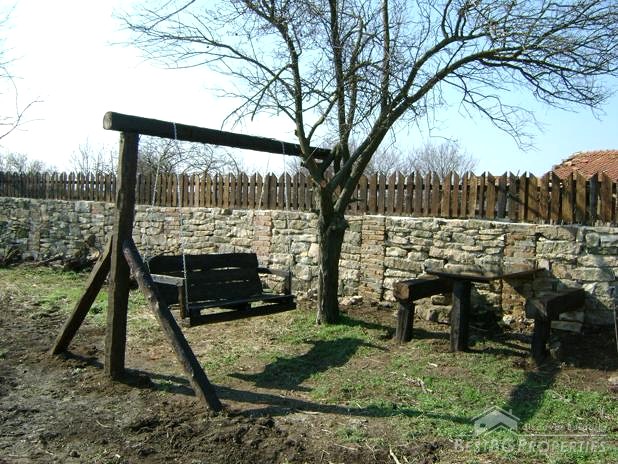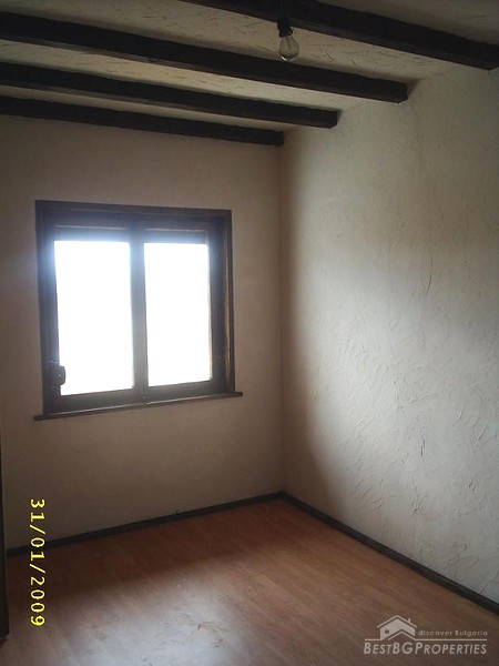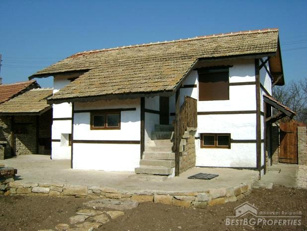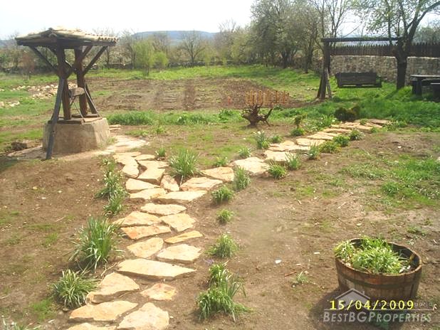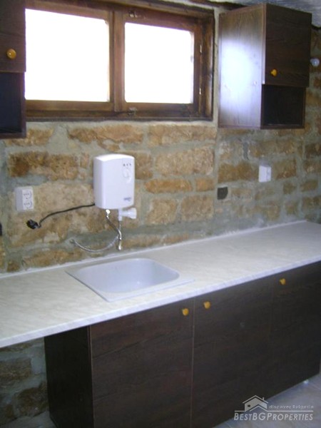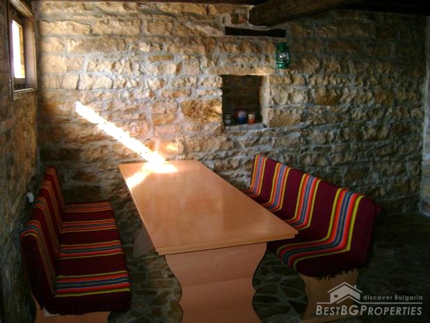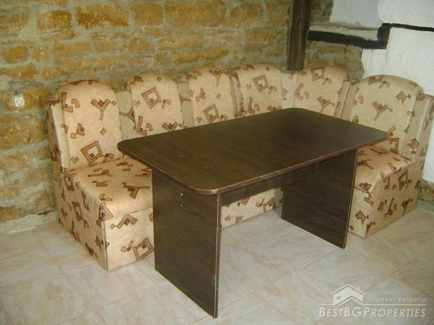 The house is built in the typical Old Bulgarian style but with new quality materials according to the highest requirements. It is two stories, comprising total living area of 100 sq m. The living area is distributed between a kitchen with dining area, tavern with a fireplace, two bedrooms, bathroom and WC. The house is for sale fully furnished. The furniture is new but not so good quality. The house is for sale finished with laminate and terracotta floorings, PVC window joineries. It is built on a very spacious plot of land - 1000 sq m in size. There is a barbeque, parking, well with drinkable water, fruit trees, wooden benches.