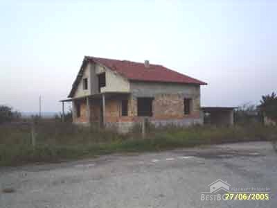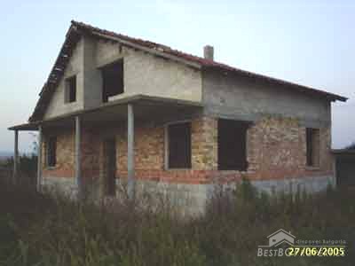 The house which is for sale is not entirely finished and is on rough stage of completion at the moment. It is two story, brick built, having 60 sq m of built area for each floor. The first floor consists of a corridor, kitchen, dining and living room, and a WC. The second floor comprises a corridor, three bedrooms and a bathroom with WC. There is also a balcony. Adjacent to the main building there is a garage with built area of 50 sq m. Since the house is not completed you will have the chance to finish it your self according to your own taste and requirements. The house is built on a spacious piece of land - 1200 sq m in size. The property faces an asphalted street.