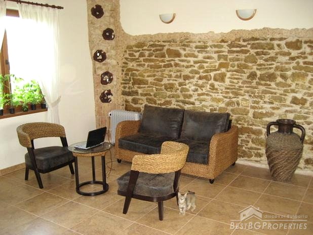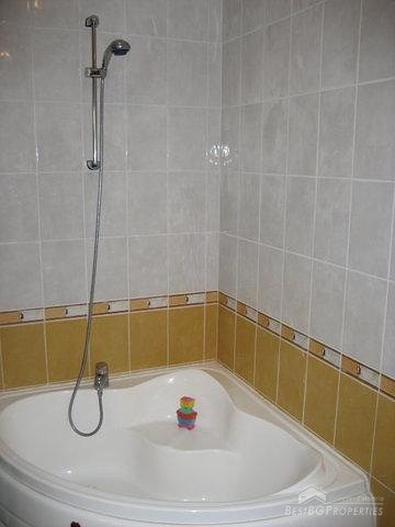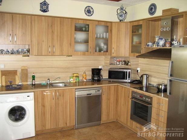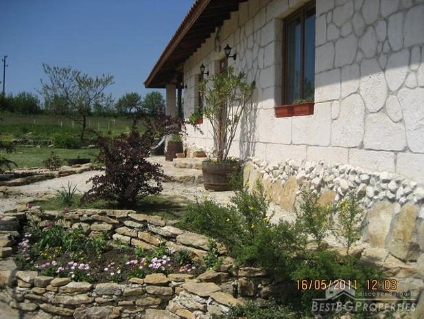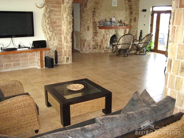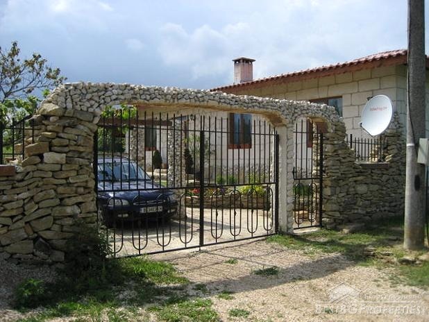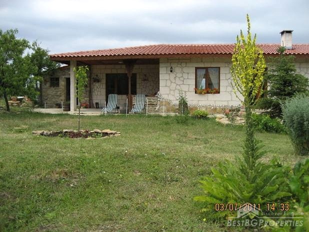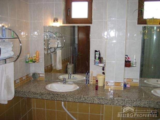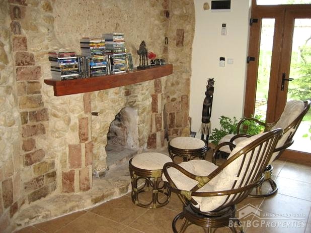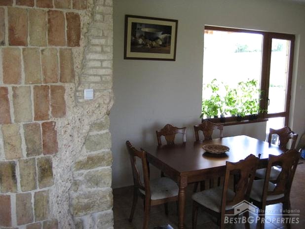 It is a new house located in a 25-minute drive from the center of Varna and 15 from the airport. It is situated in a beautiful village with good infrastructure and easy access. The living area of the house is 180 sq m, and the land area is 3000 sq m. The house has three bedrooms, a kitchen, living room, dining room, bathroom. It is furnished with new furniture of high quality and comes fully prepared for living. Kitchen equipped with appliances Electrolux (dishwasher, washing machine, ceramic hob, oven, microwave, refrigerator, etc). The bathroom is equipped with a shower with steam and whirlpool, bath tub, bidet, etc. The house features a satellite TV, high-speed Internet, landline phone, security system (SOD). All rooms are air-conditioned. In the living room there is a home theater with LCD TV 50 "inches (Samsung). Also there is a fireplace, barbecue and more. Outside there is a children's playground, vineyard, vegetable garden and fruit trees (walnuts, peaches, apples, plums, cherries, apricots, and etc). Great view from the windows, just 500 meters from the house there is a lake. Excellent year-round access, nice neighbors. The village has a large number of British families. Nearby there is a school and kindergarten.