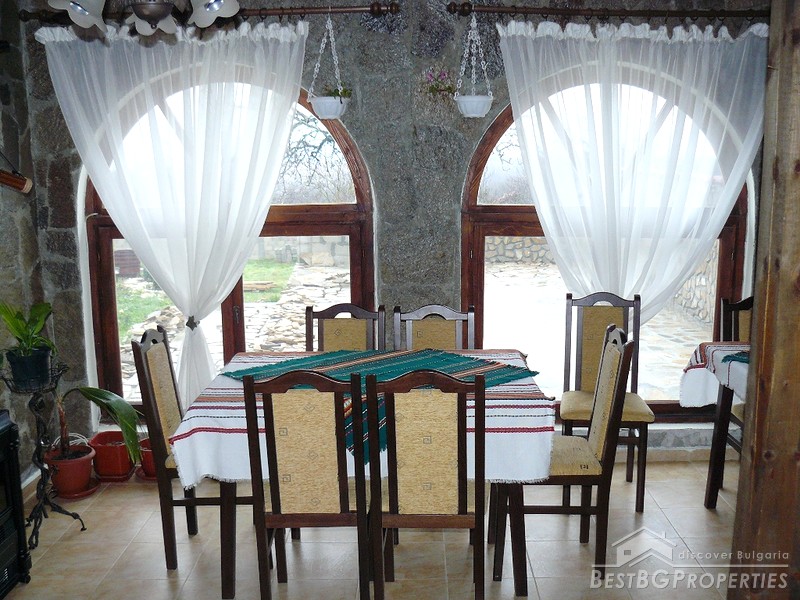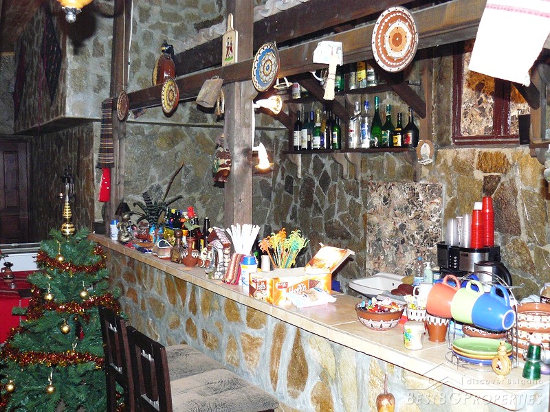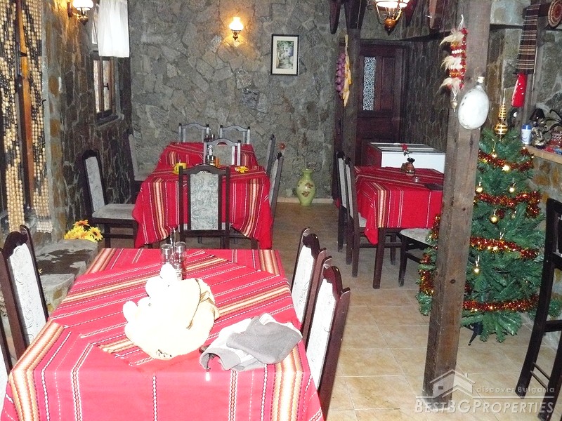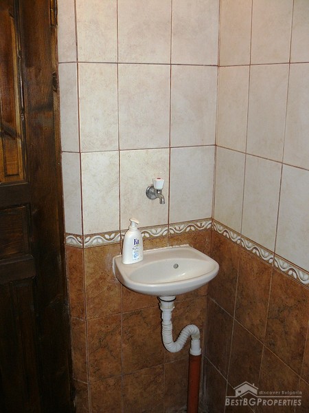 The ground floor which is the newest part of the house (2008) has total living area of 130 sq m and is used as a tavern. It consists of two rooms - 60 sq m and 35 sq m, kitchen - 30 sq m, bathroom with WC - 5 sq m. The premises are decorated with stone, terracotta floors.