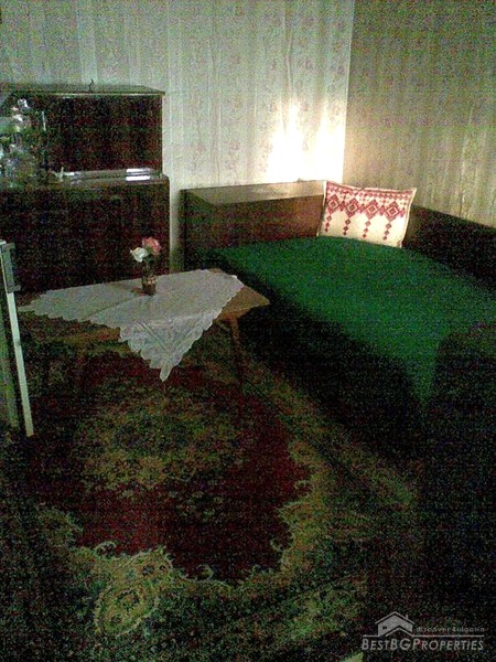 The property comprises a well-sized one-story house built on a very spacious plot of land. The house comprises one residential floor with total living area of around 100 sq m. The house is old and is in need of renovation before you move in. It comes with the old furniture and equipment which is in it. The garden area is 1200 sq m in size. It is totally flat and includes many vegetables, fruit trees and some additional farm buildings - it suits perfectly for agricultural needs.