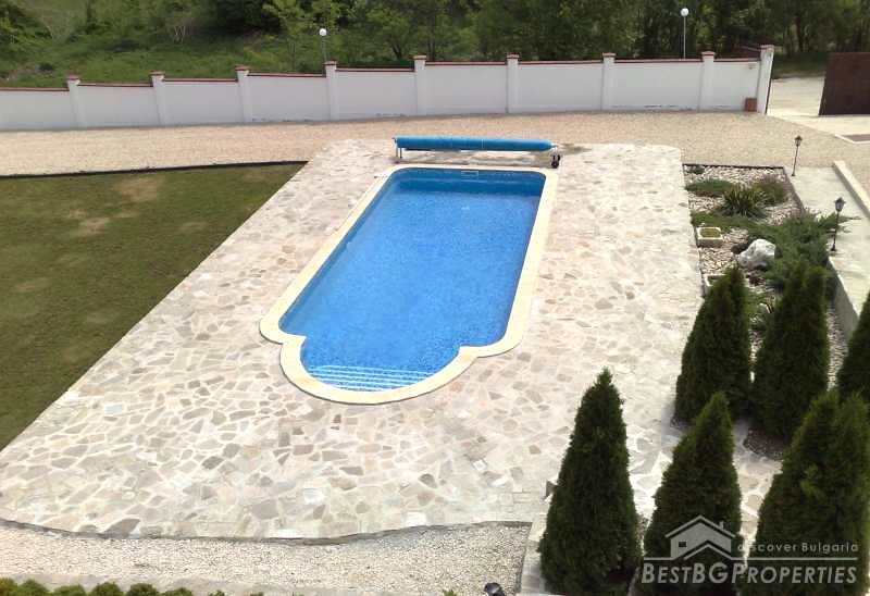 This luxury two-storey house is located in a nice village, just 28 km from Varna. Distribution of the premises is as follows - 1st floor: bedroom, living room with kitchenette, bathroom with toilet, terrace. 2nd floor: two bedrooms, bathroom with toilet, balcony. The house is fully furnished and luxuriously equipped. With a swimming pool, security system, two car garage, home phone, unlimited internet. The house offers excellent views of the mountains. The area is ideal for fishing and tourism.