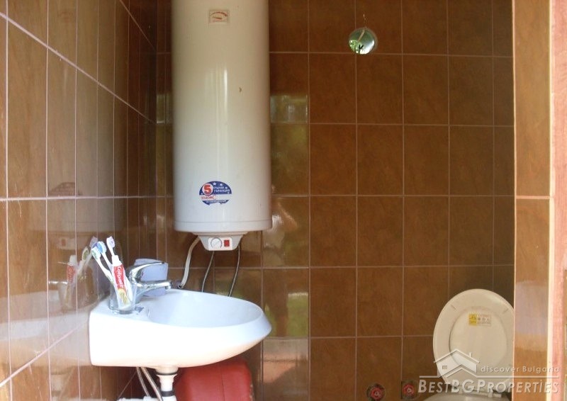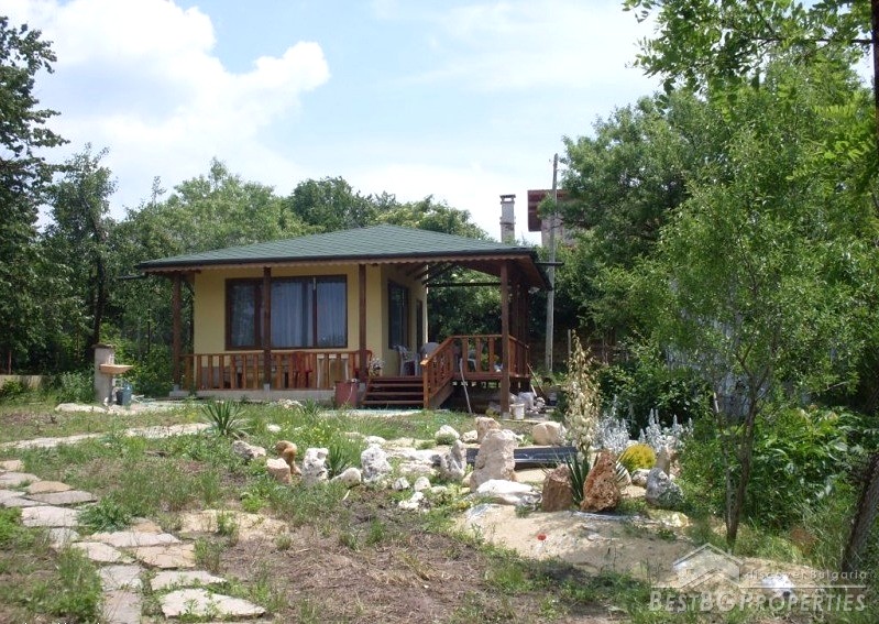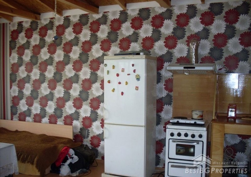 The house comprises of one residential floor and a total living area of 40 sq m. It is a small and cozy building, sitting on a spacious plot of land with size 500 sq m. The yard is separated with stone walkways and is totally flat with lots of greenery. From the inside the house is nicely furnished and equipped - ready to move in. It has PVC window joineries, laminate and terracotta floors, latex painted walls and ceilings. The whole property is surrounded with a fence. Quality road leads right to the house.