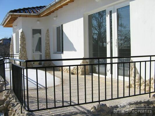This wonderful new house comprises of one residential floor and a total living area of 160 sq m. The living area is distributed between three bedrooms, one of which with its own bathroom and WC, living room with dining area and kitchen box, also a nice verandah. The house is offered fully finished "on key" stage and is ready to move in. It sits on a plot of land with size - 890 sq m.