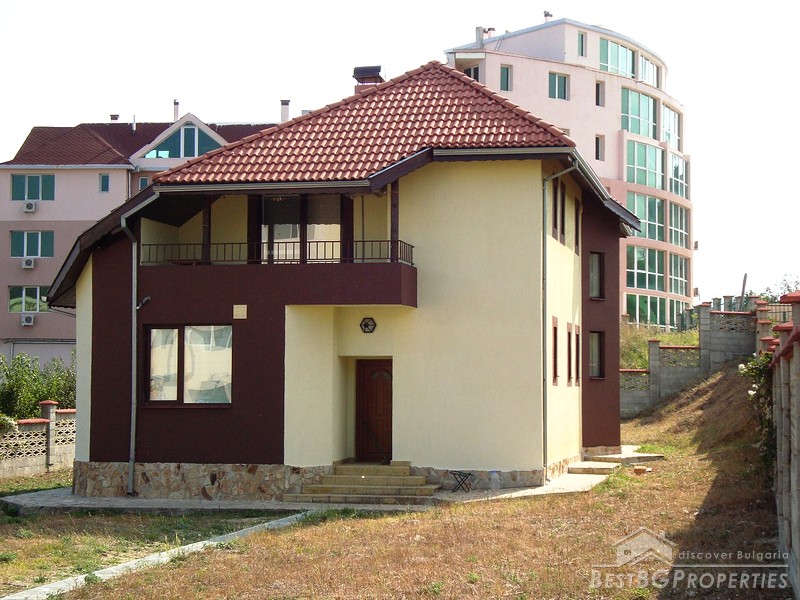 We present to your attention this luxury house for sale, located in a resort area north of the city of Varna. The house has a total living area of 220 square meters, built in 2004 year. It has act 16 since 2006. The garden included in the price is 1000 square meters. The property is connected to all communications. There is sewer, pipe line, steam heating, air conditioning, digital telephone, Internet, satellite TV, home security, fully furnished, for year-round living. The property is located in the resort of "Chayka", between the beaches Kabacum and Sunny Day, at the same distance from both - around 350 m. The distribution of the premises inside the house is as follows: On the ground floor there is a kitchen-dining-living room, bedroom, dressing room, shower + sanitary, boiler-laundry room, hallway. On the second floor there is a master bedroom, study, dressing room, bedroom, bathroom, shower room, a sauna, and a loggia.