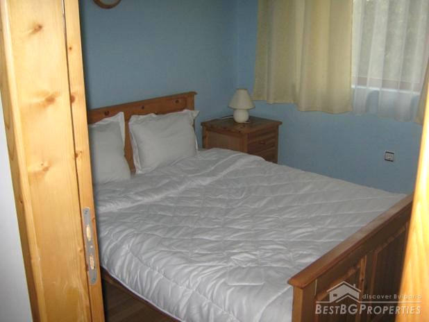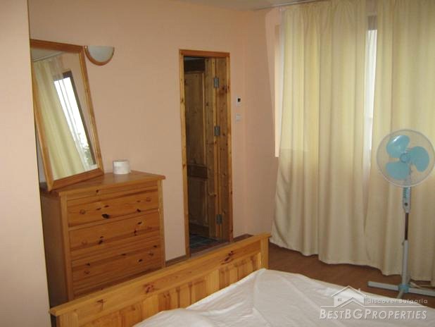 The two-storey house is built in 2009. It has total living area of 165 sq m. The land has total size of 970 sq m, richly planted with many fruit trees. On the first floor there is a living room with kitchen and soft furniture, bathroom. On the second floor there are three bedrooms, fully furnished and a bathroom. The first and second floors have balconies all around.