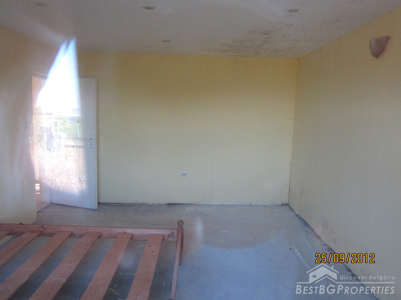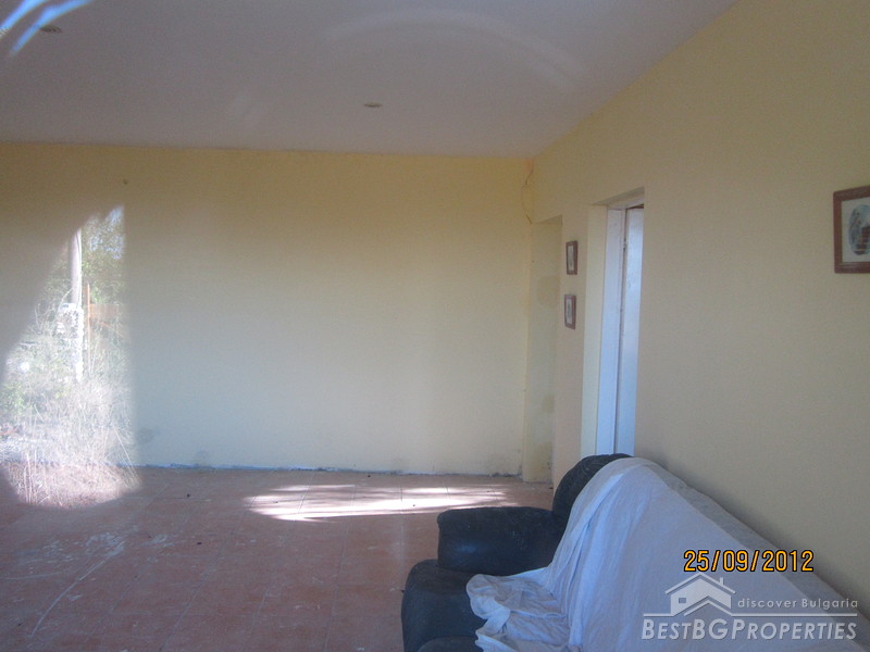 It is a two-storey renovated family house with stone foundations. Both floors are connected through an outdoor staircase. The disposition is as follows: On the first floor there is a living-room with dining area and kitchenette, two transitional bedrooms and a self-contained bathroom with toilet. On the second floor there is an open-plan premise. The plot on which the house is built has an area of 980 sq m - it is entirely flat with a rectangular shape. Next to it there are three other plots (470, 540 and 490 sq. m) which are offered along with the house and are included in the price. The house is set in the part of the property which is accessible from the street.