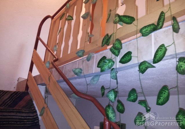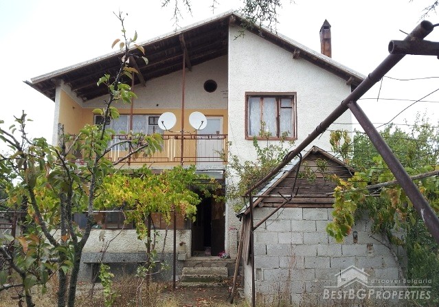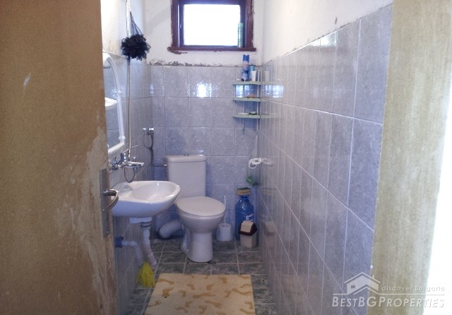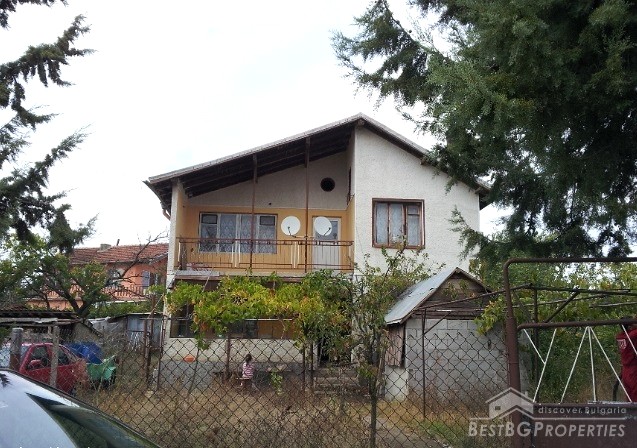 The offered property consists of a two-storey house with total living area of 130 sq m and a yard of 1500 sq m. The house was built in 2001. It has the following distribution of the premises: on the first floor there is a living room with kitchen, bedroom, bathroom with WC, corridor, and a staircase to the second floor. On the second floor there is a large living room, two bedrooms, bathroom with WC, corridor and a balcony. All wet premises and hallways are finished with terracotta. In the yard there is a metal garage and a small barn, vineyard, fruit trees. The property is located on a main road.