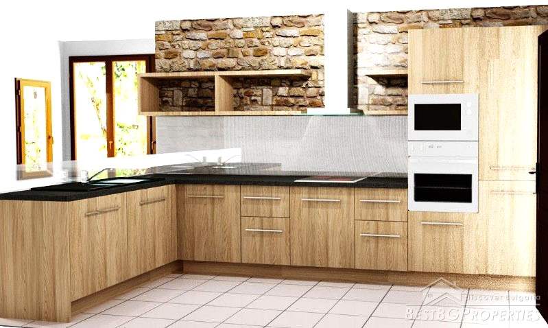 The offered house is built in the traditional style, while being modernly equipped and isolated. It was built entirely of stone and solid wood. The combination of stone and wood creates great atmosphere of coziness and warmth.