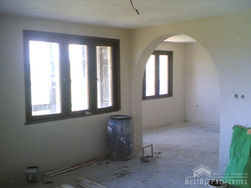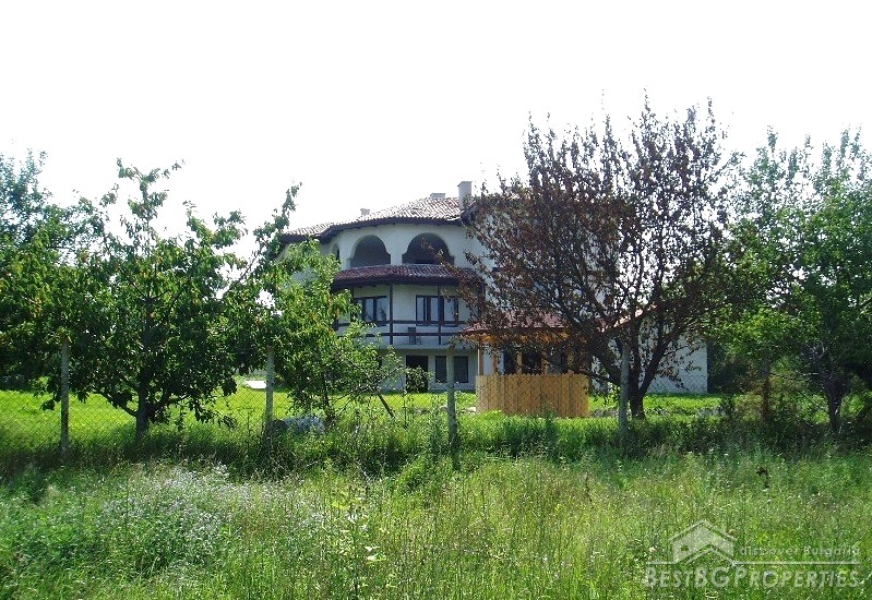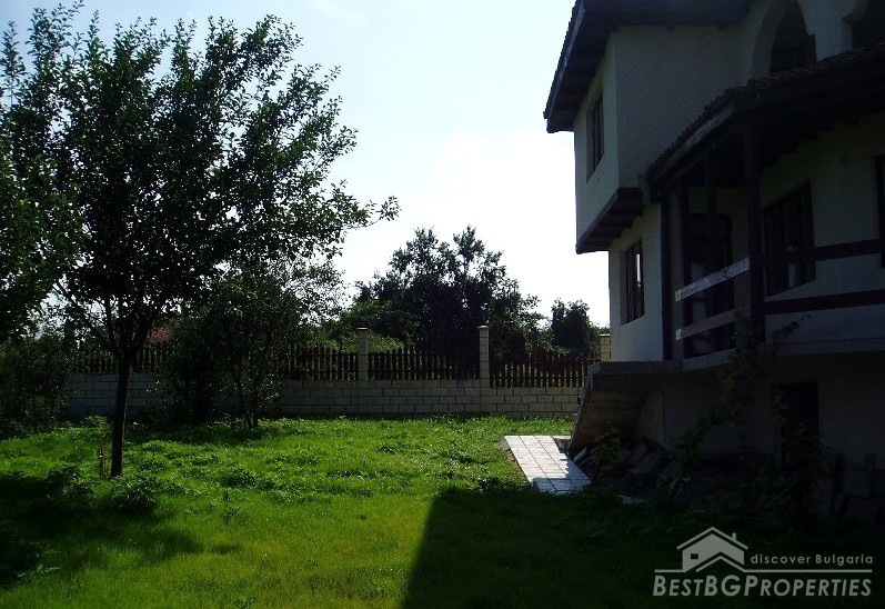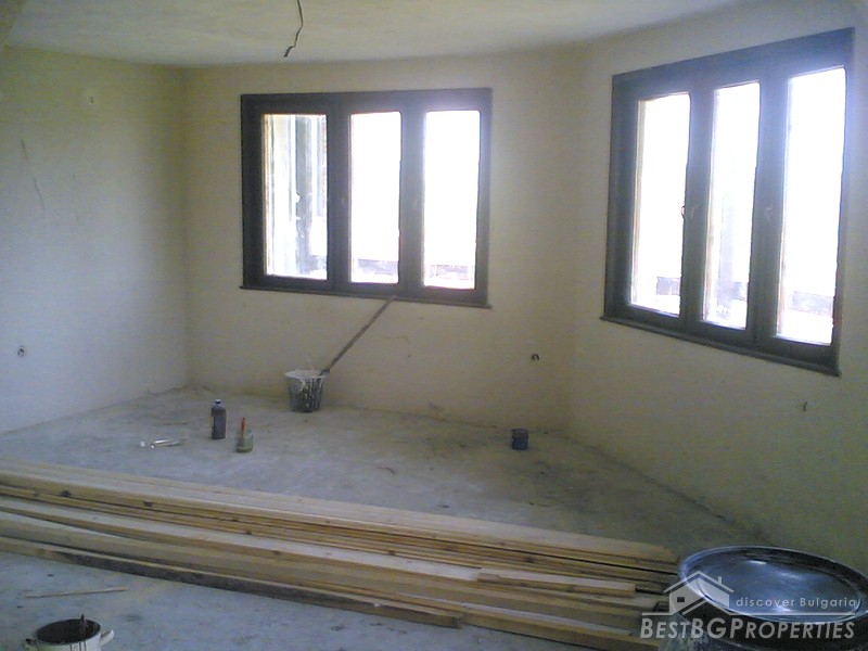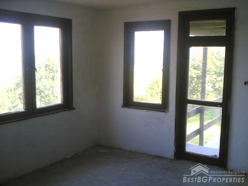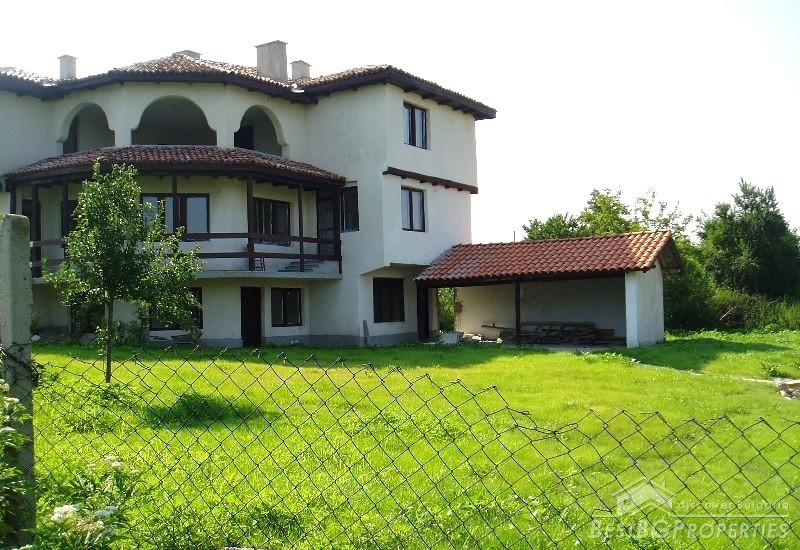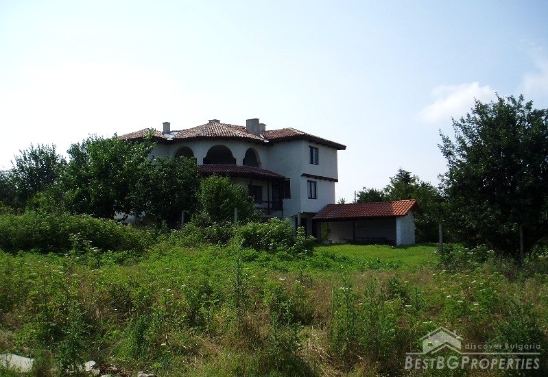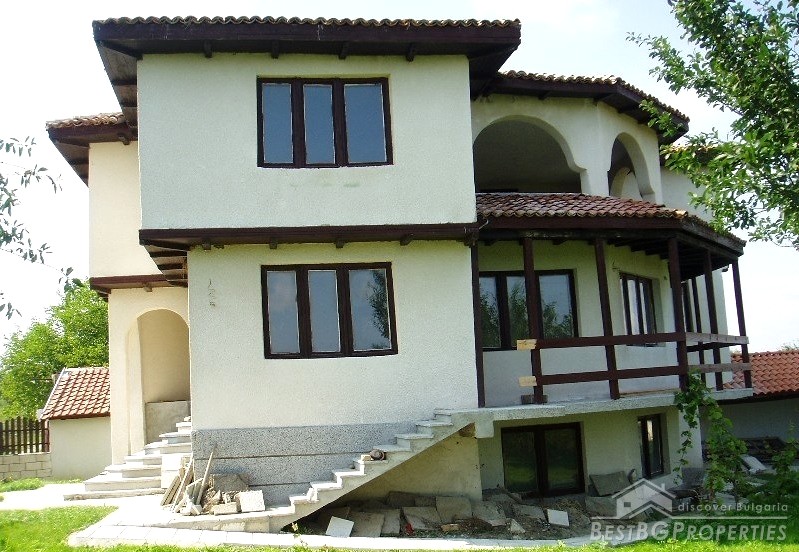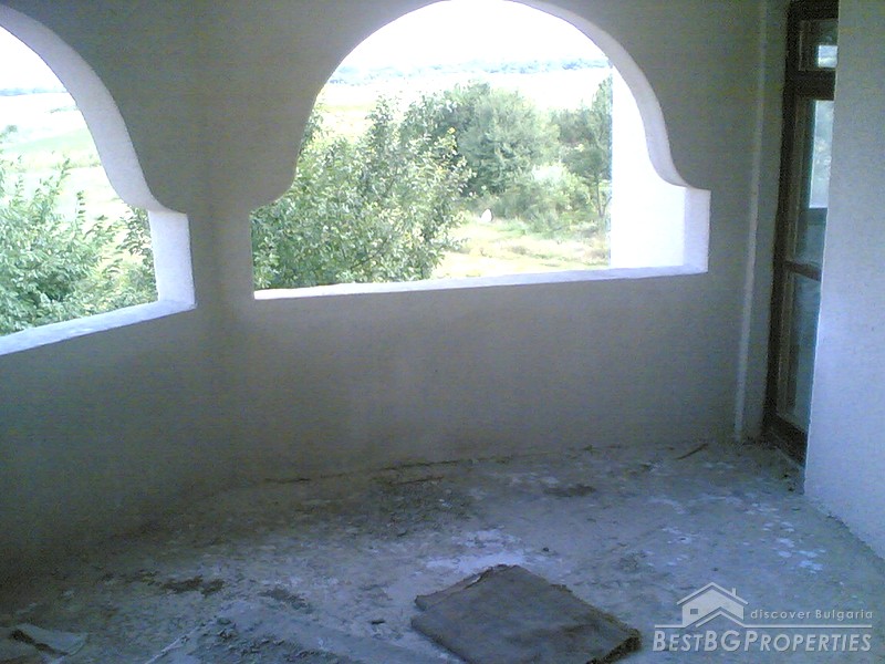 The villa was built in the Old Bulgarian style, finished on plastering and putty. It has spent electricity and water, equipped with wooden window joineries. The house needs final finishing - tiles, floorings, painting. The villa has an amazing view. From the second floor on a clear day in the distance you can see the sea (7 km).The nearest neighbors are 70 meters away and the property is the last house in the village.