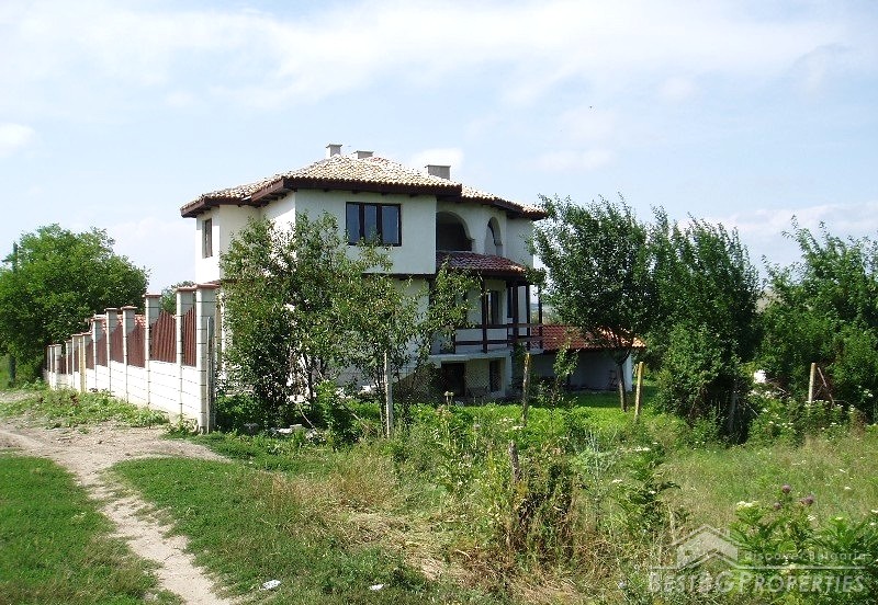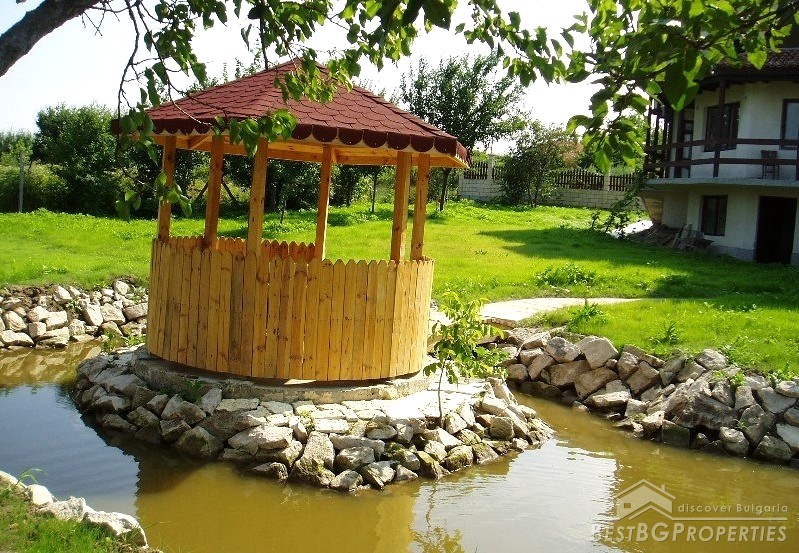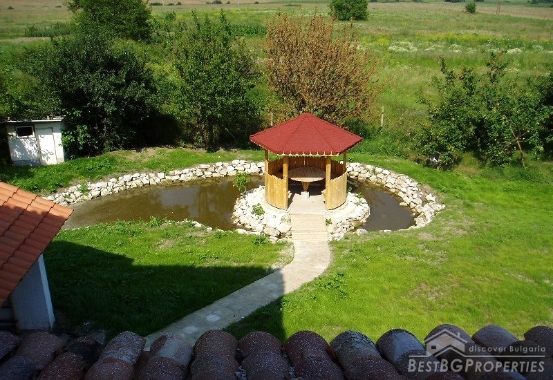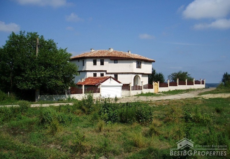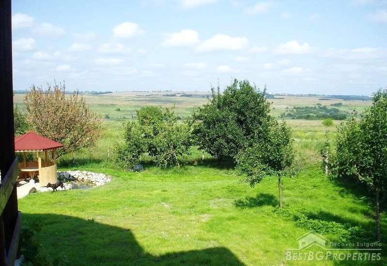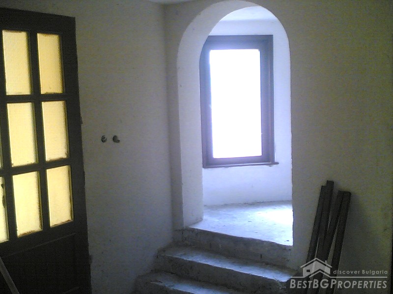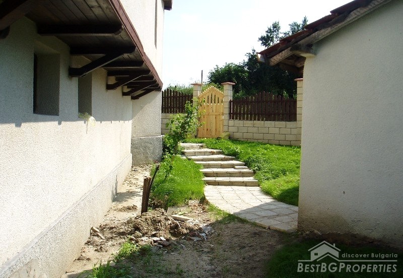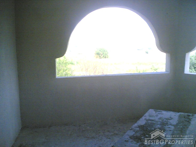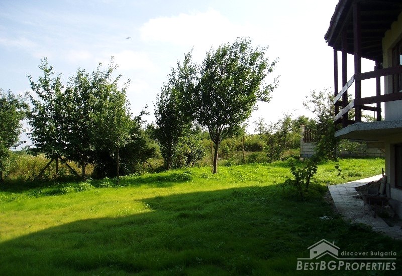 The villa was built in the Old Bulgarian style, finished on plastering and putty. It has spent electricity and water, equipped with wooden window joineries. The house needs final finishing - tiles, floorings, painting. The villa has an amazing view. From the second floor on a clear day in the distance you can see the sea (7 km).The nearest neighbors are 70 meters away and the property is the last house in the village.