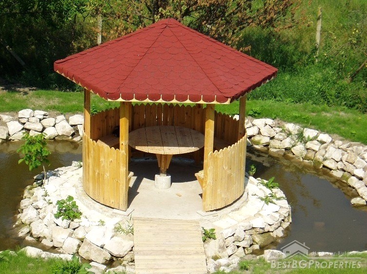 In the yard there is a gazebo with pool and 2 car garage. The house has act 16 and is finished on Bulgarian standard of completion - on plastering and putty.